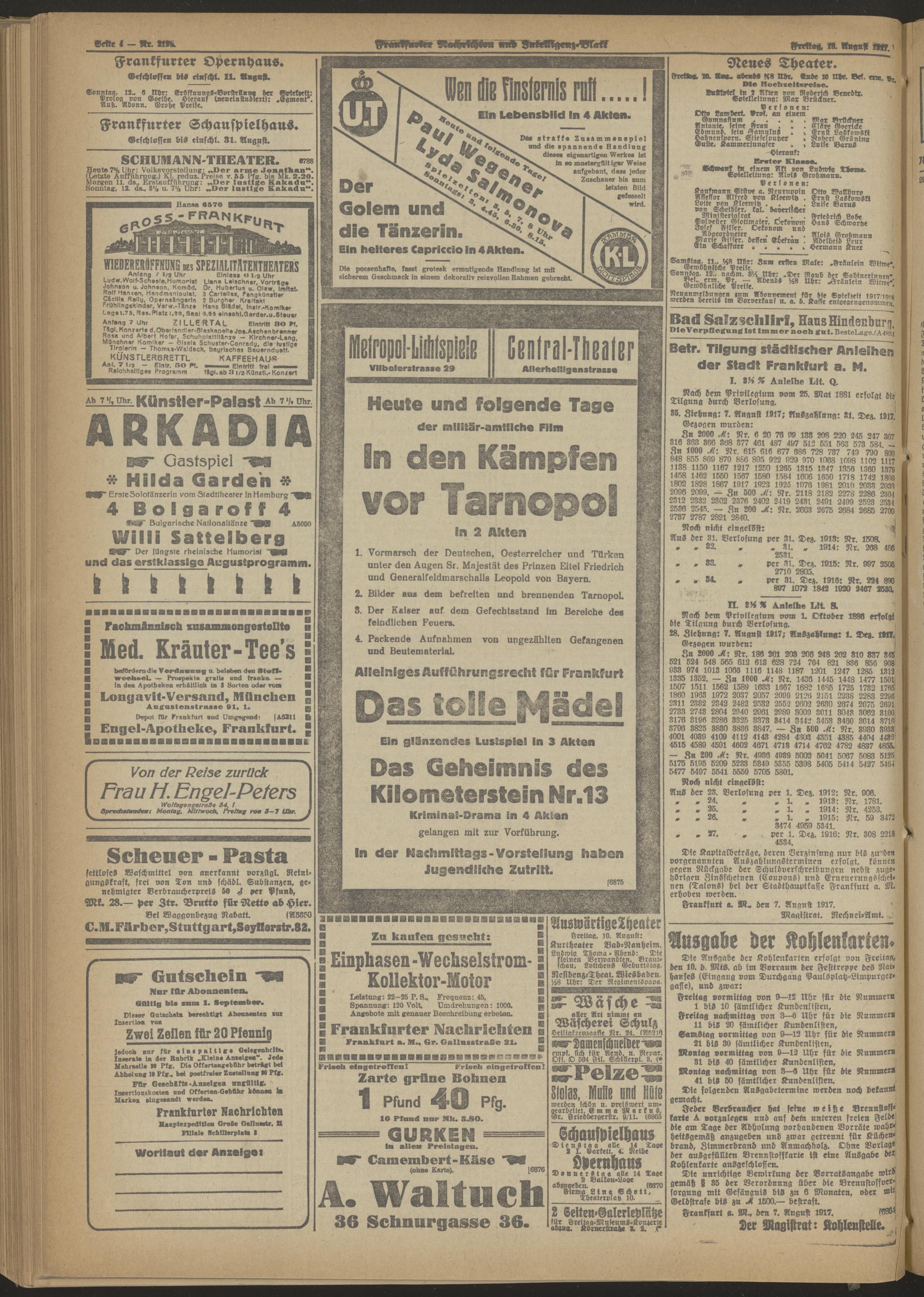 10.08.1917 Morgen-Ausgabe = Nr. 219 b