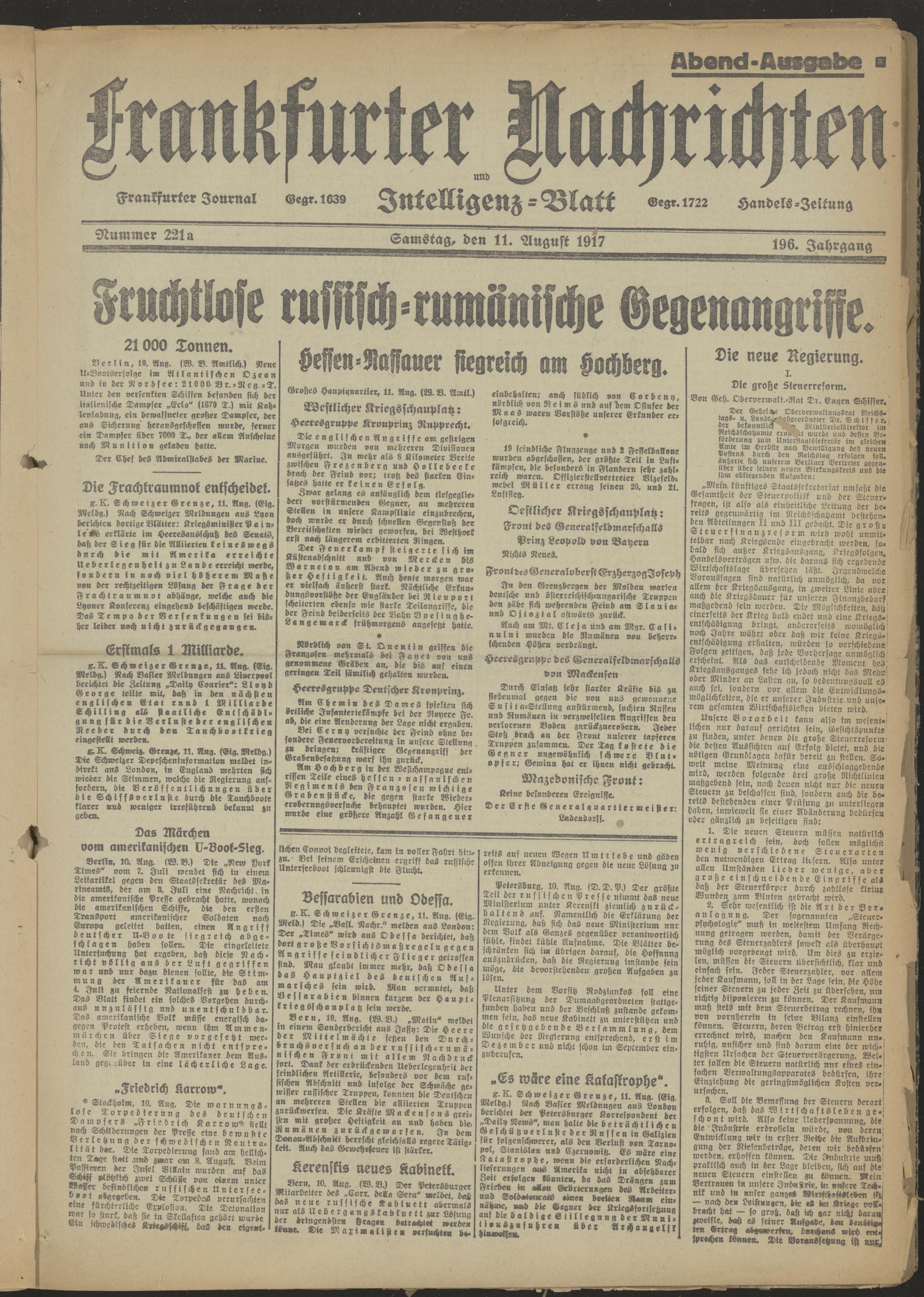 11.08.1917 Abend-Ausgabe = Nr. 221 a