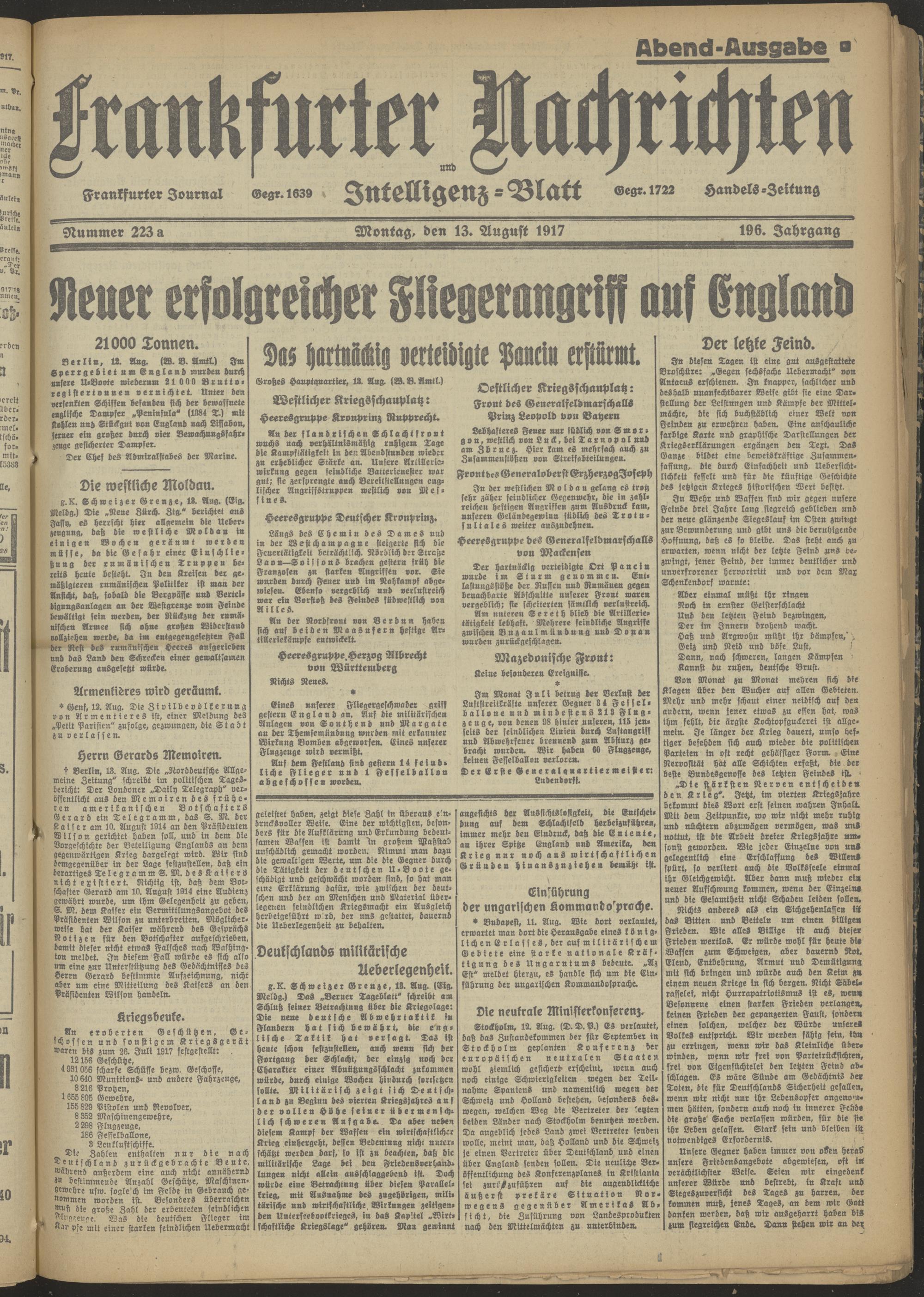 13.08.1917 Abend-Ausgabe = Nr. 223 a