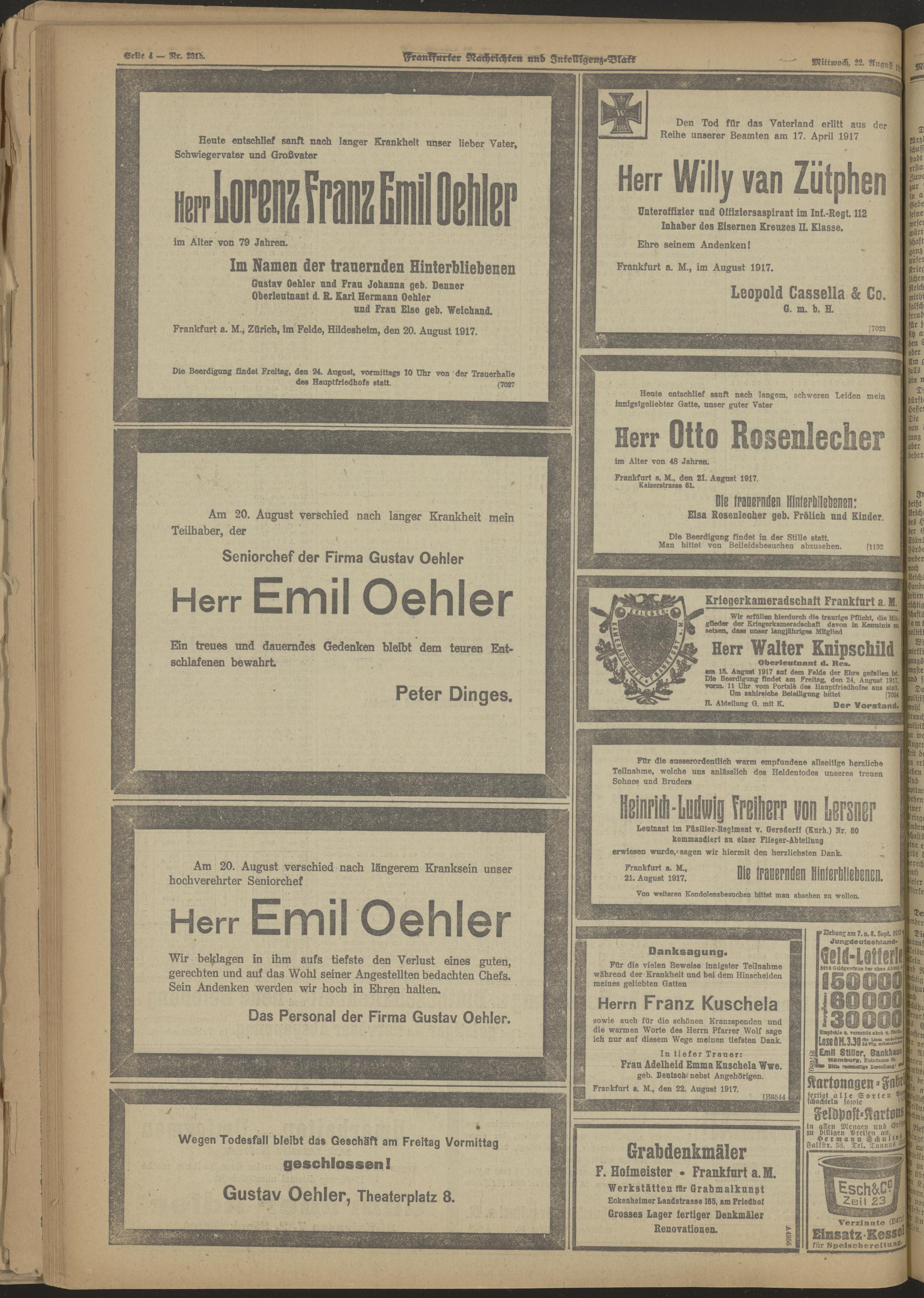 22.08.1917 Morgen-Ausgabe = Nr. 231 b