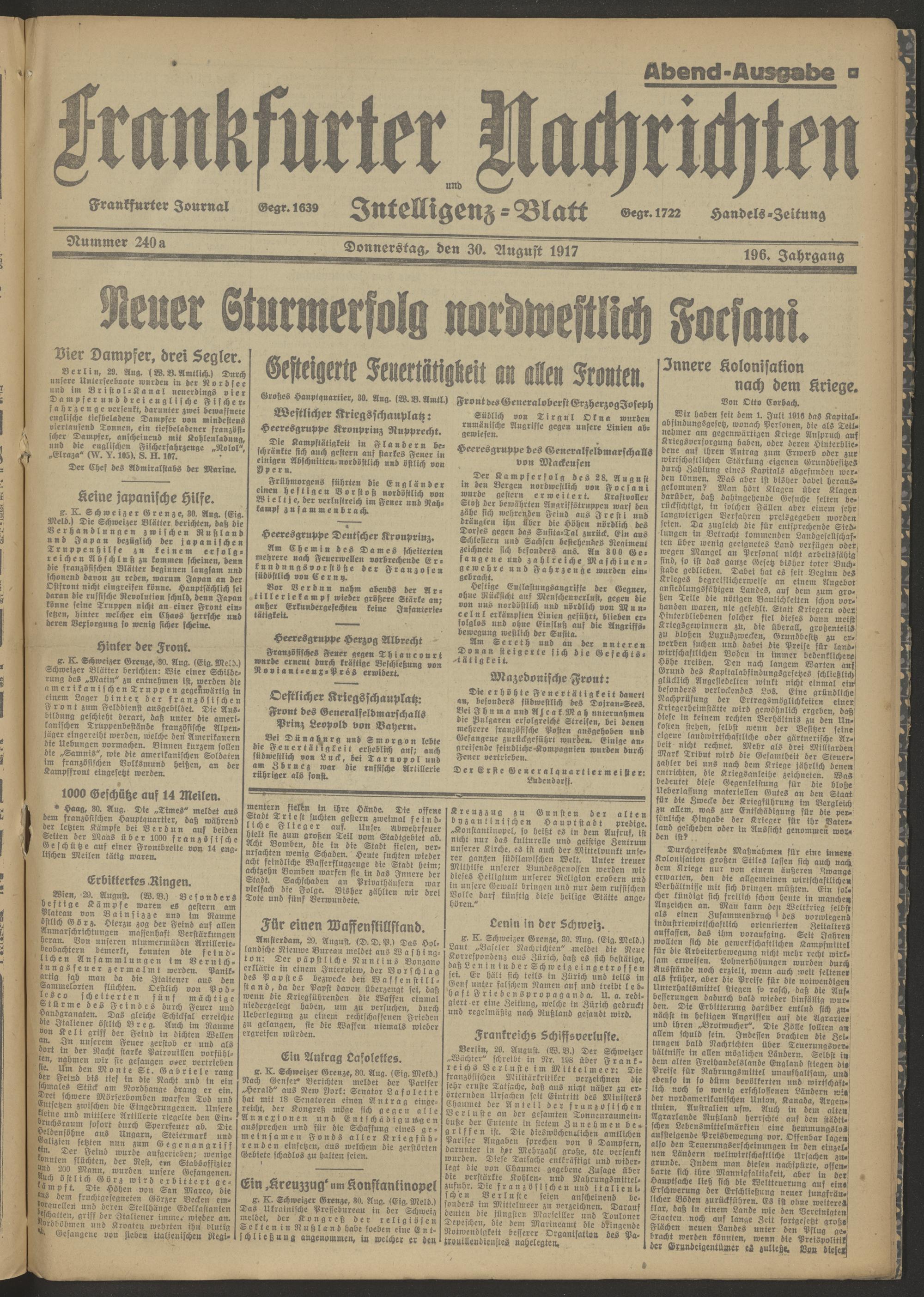 30.08.1917 Abend-Ausgabe = Nr. 240 a
