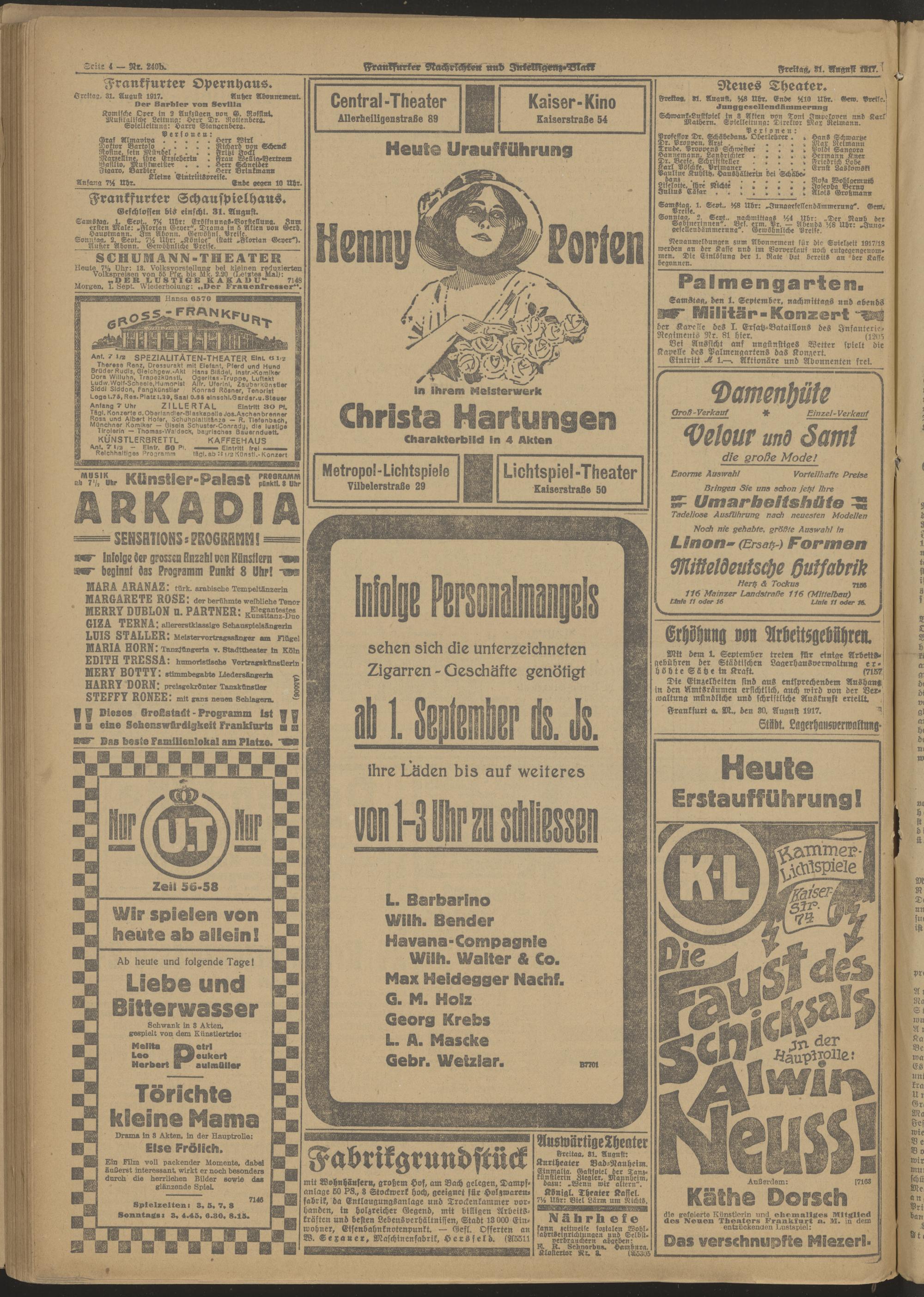 31.08.1917 Morgen-Ausgabe = Nr. 240 b