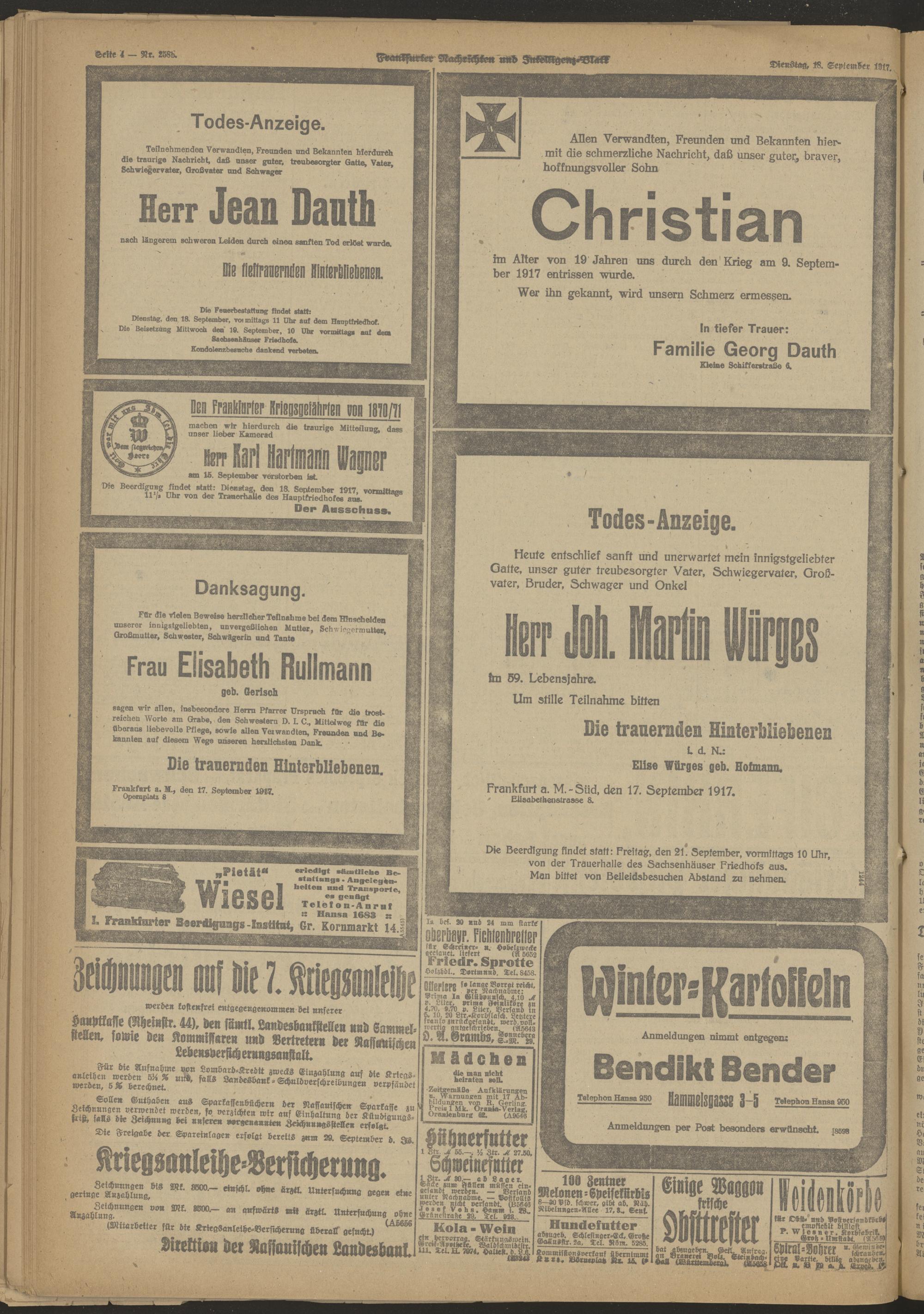 18.09.1917 Morgen-Ausgabe = Nr. 258 b