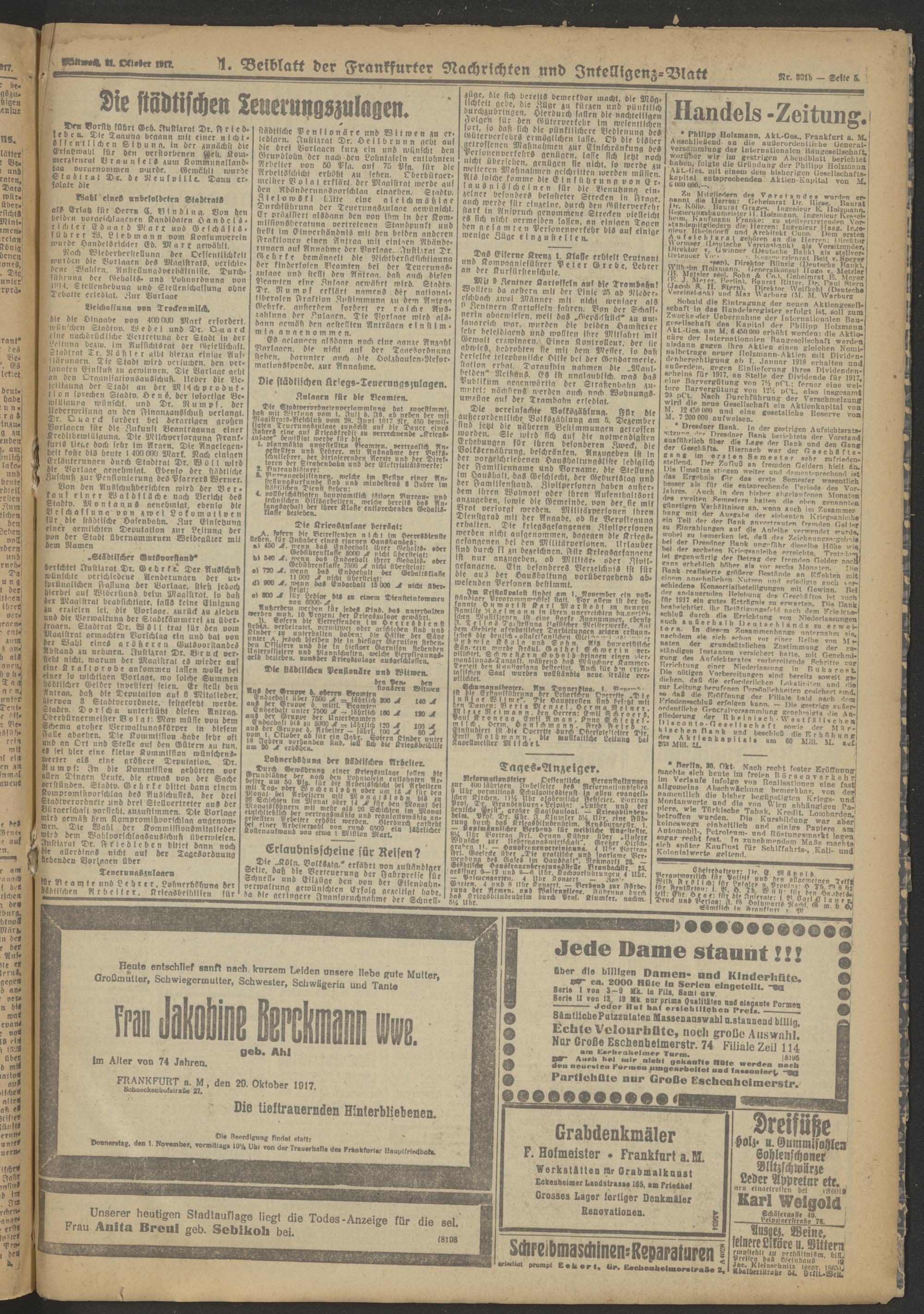 31.10.1917 Morgen-Ausgabe = Nr. 301 b