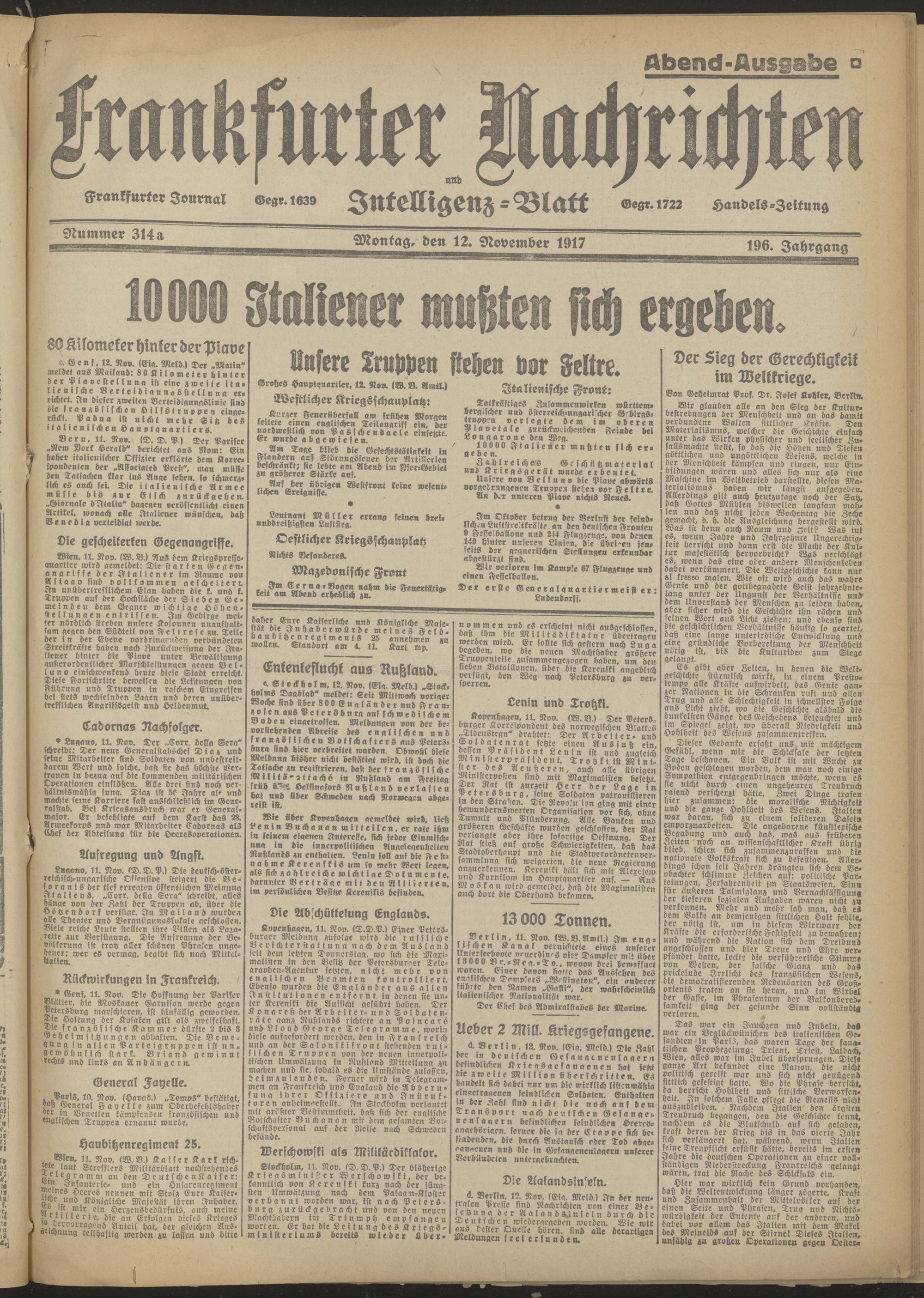 12.11.1917 Abend-Ausgabe = Nr. 314 a