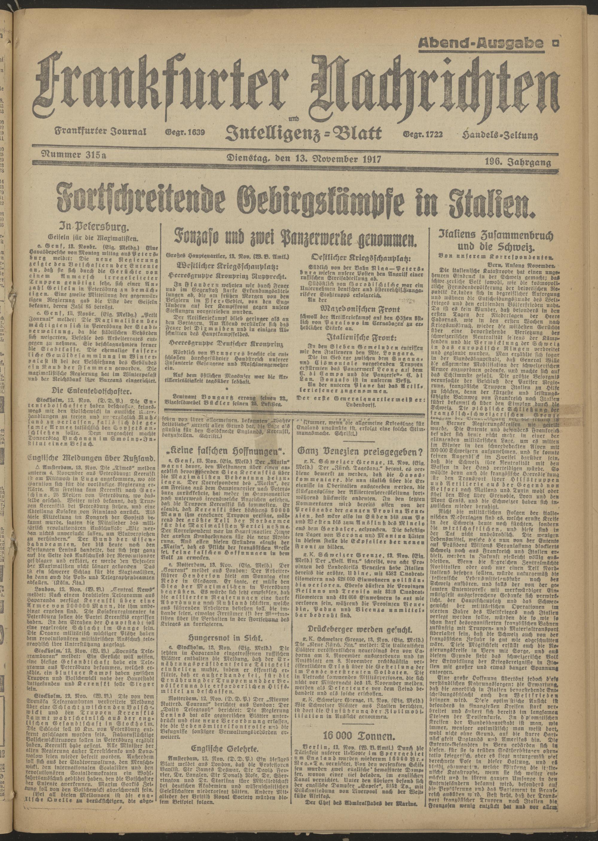 13.11.1917 Abend-Ausgabe= Nr. 315 a