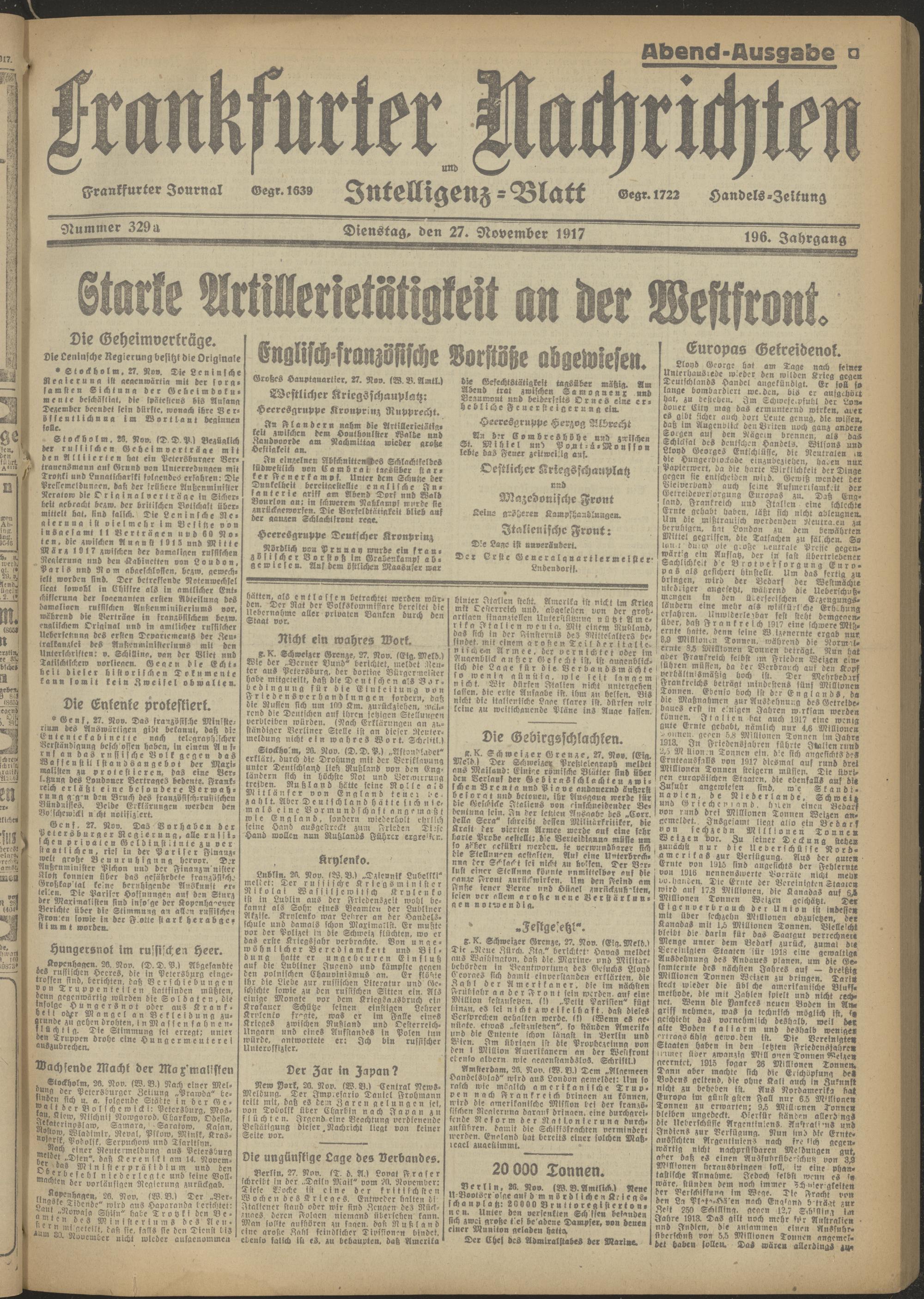 27.11.1917 Abend-Ausgabe= Nr. 329 a