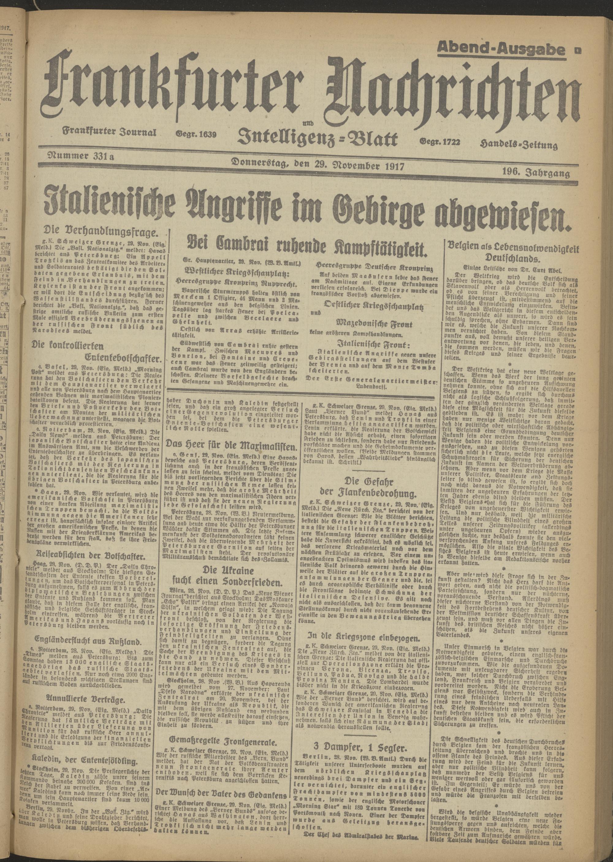 29.11.1917 Abend-Ausgabe= Nr. 331 a