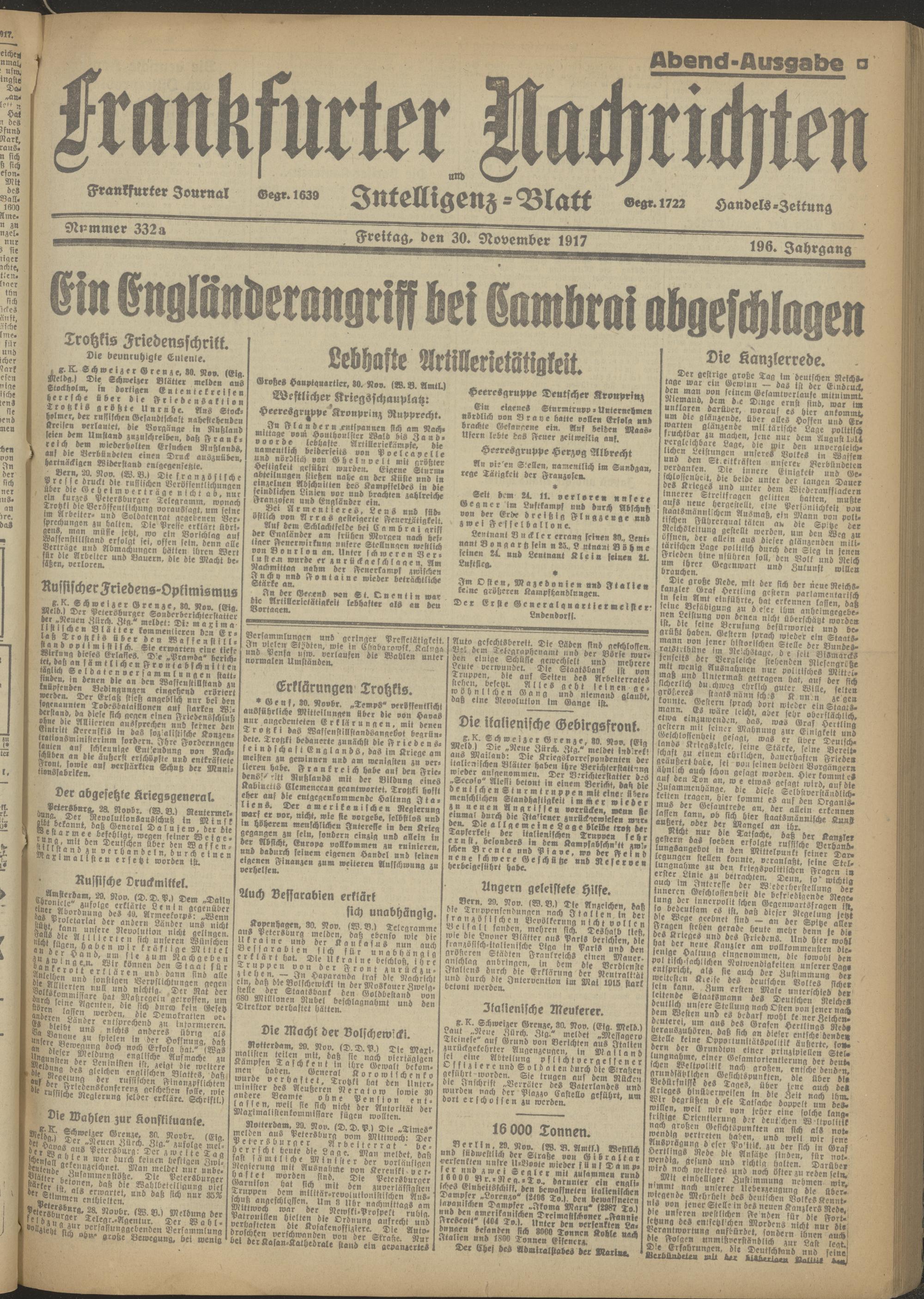 30.11.1917 Abend-Ausgabe= Nr. 332 a