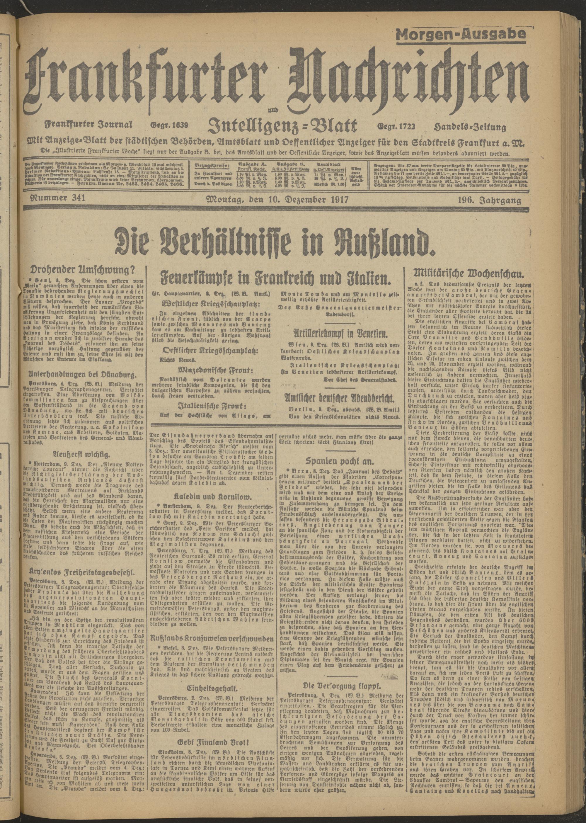 10.12.1917 Morgen-Ausgabe = Nr. 341
