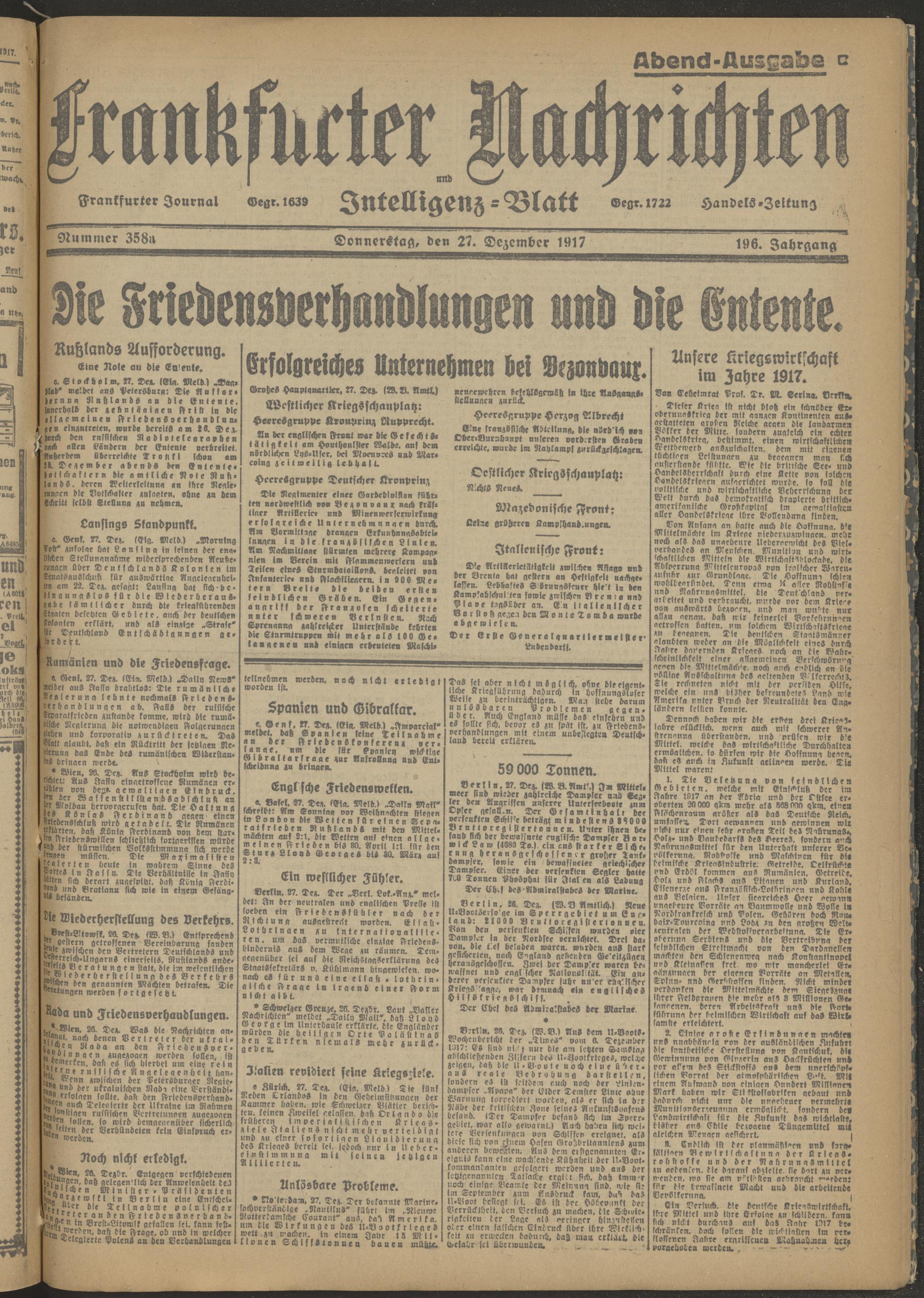 27.12.1917 Abend-Ausgabe = Nr. 358 a