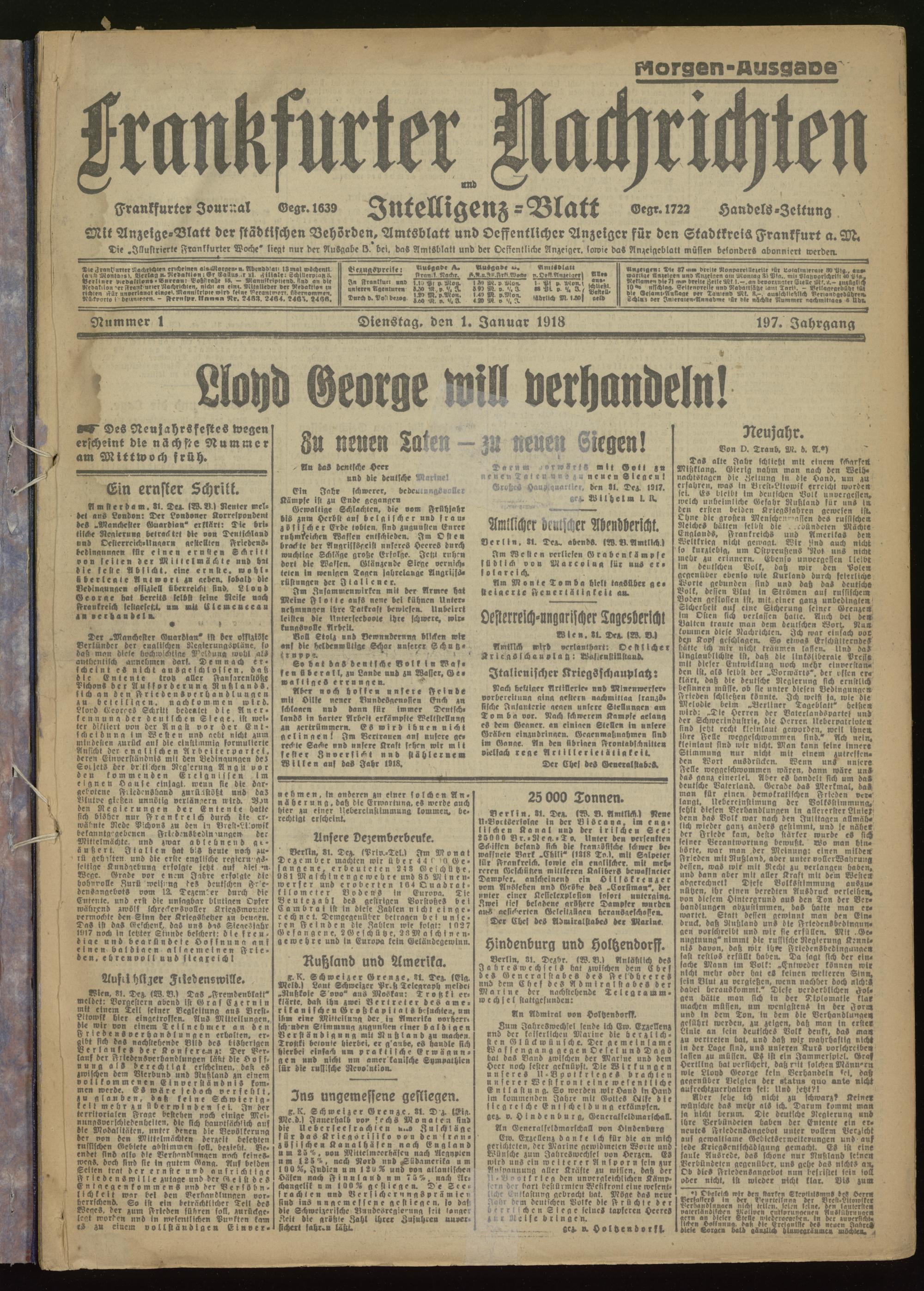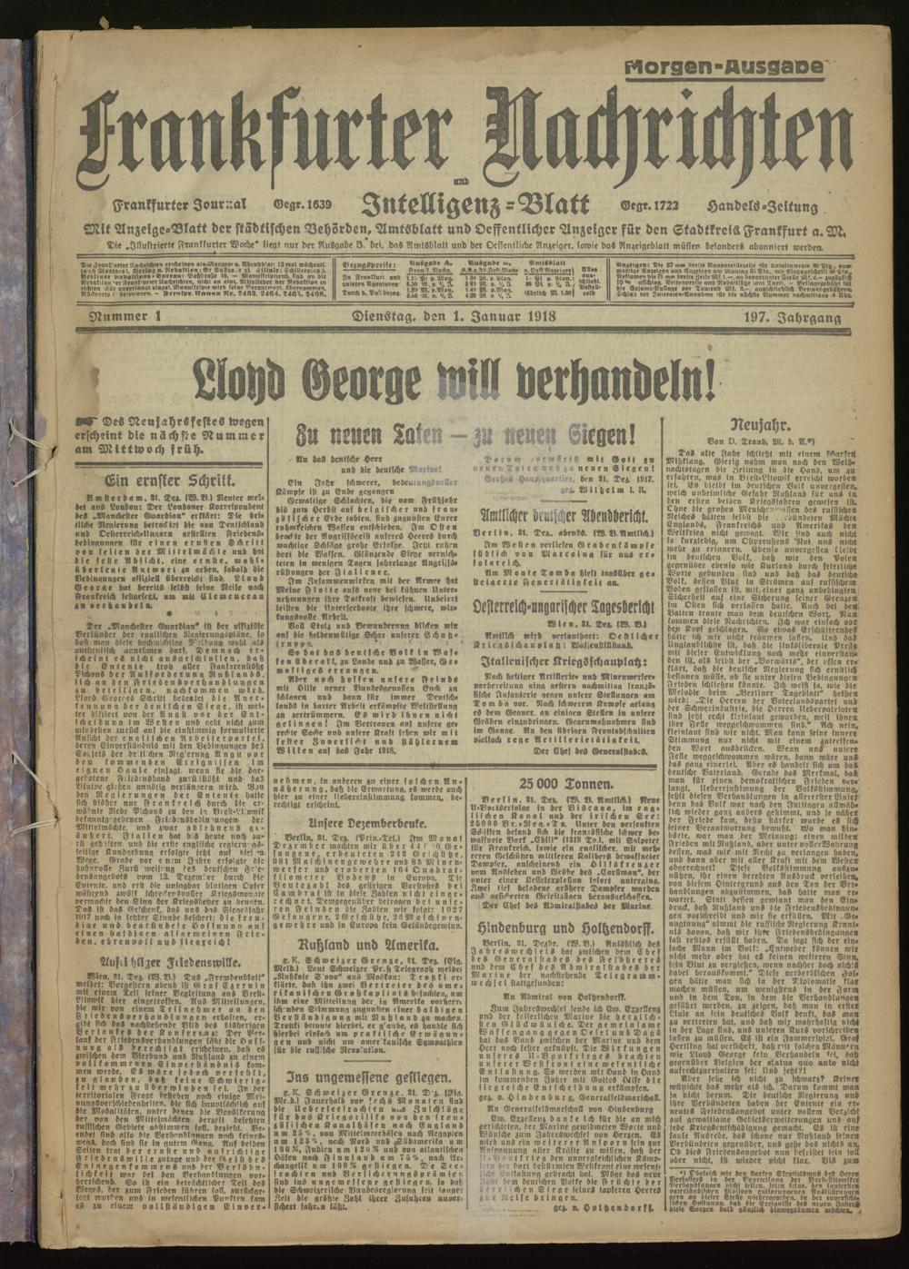 01.01.1918 Morgen-Ausgabe = Nr. 1