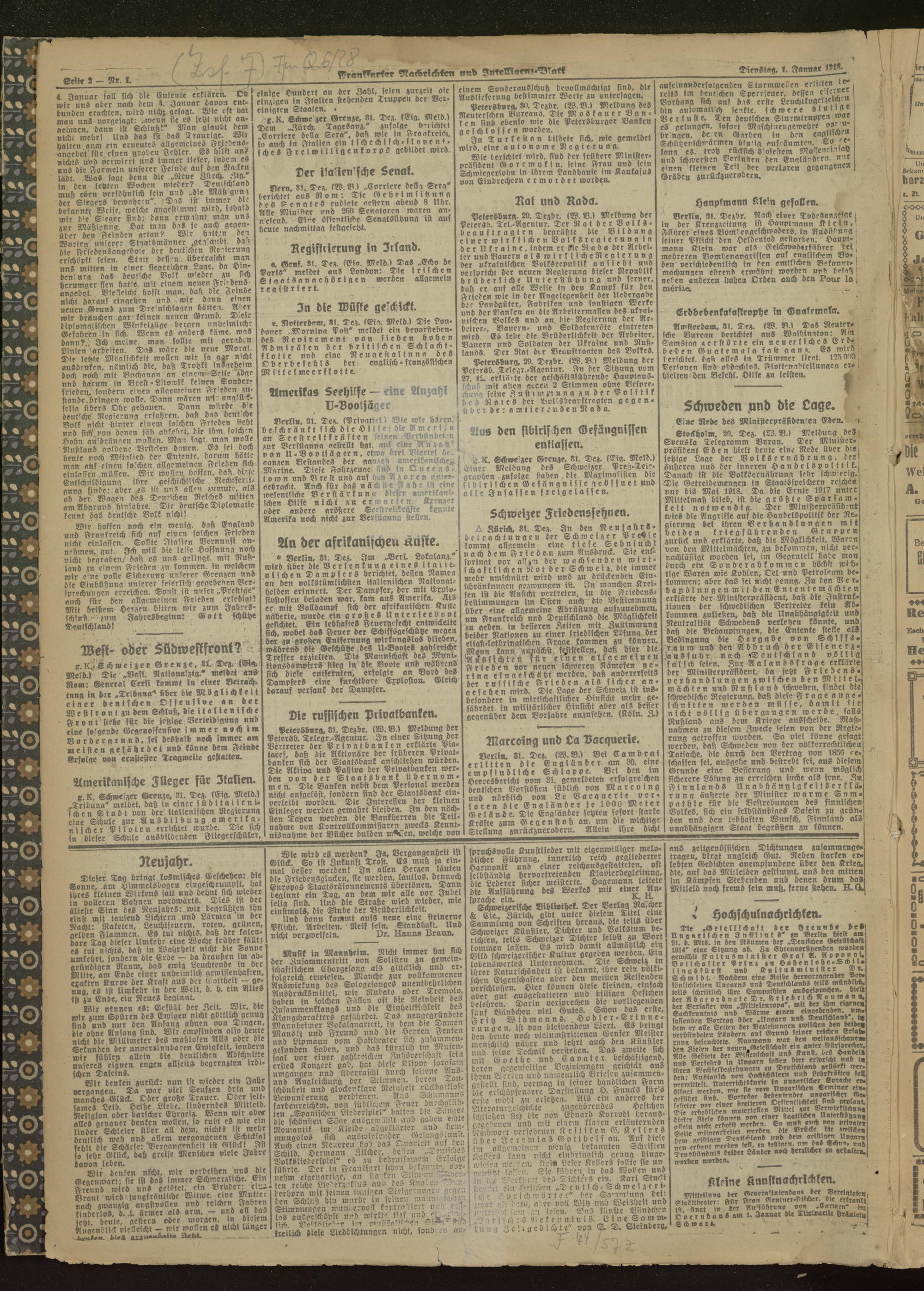 01.01.1918 Morgen-Ausgabe = Nr. 1