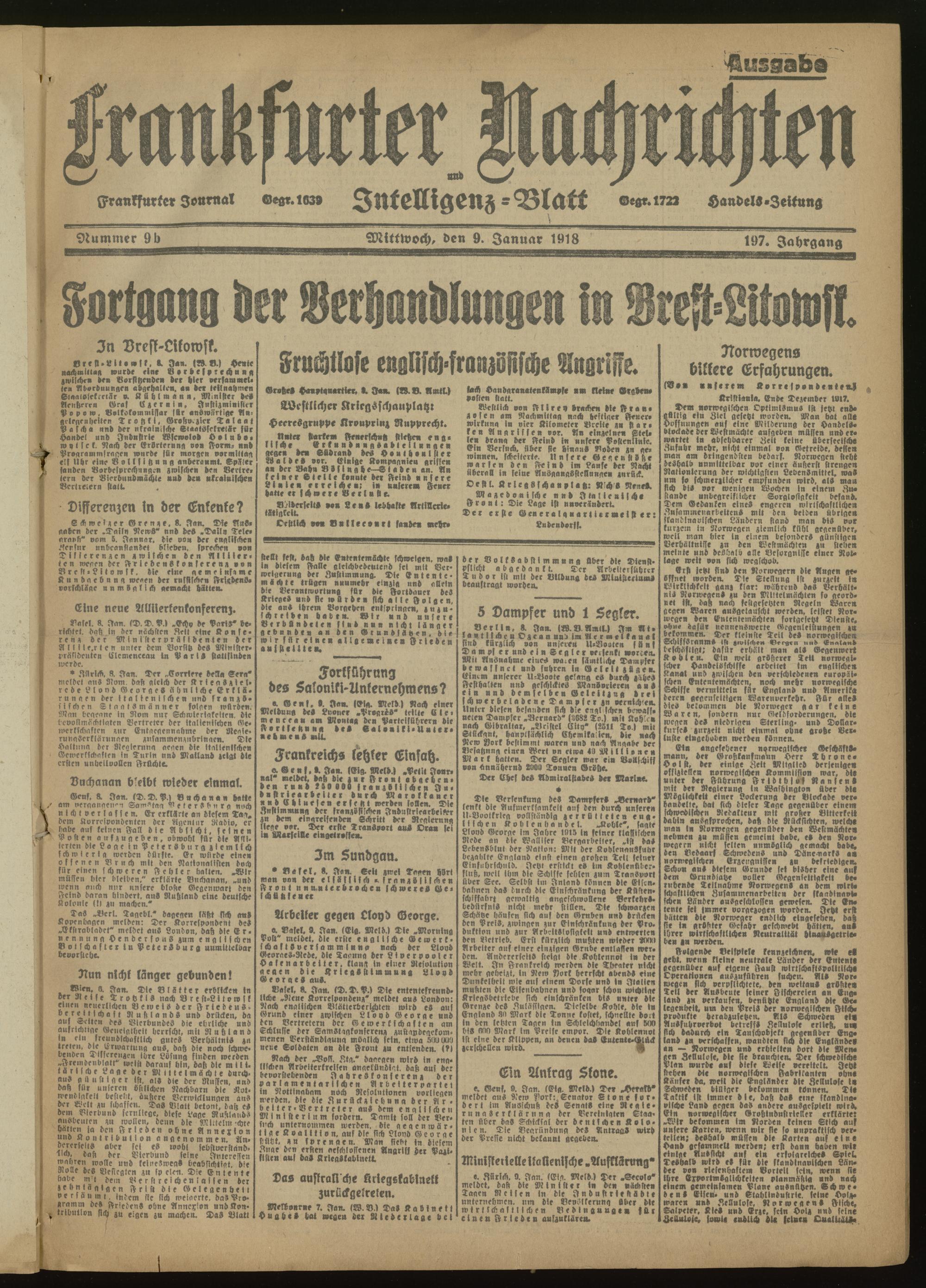 09.01.1918 Abend-Ausgabe = Nr. 9 b