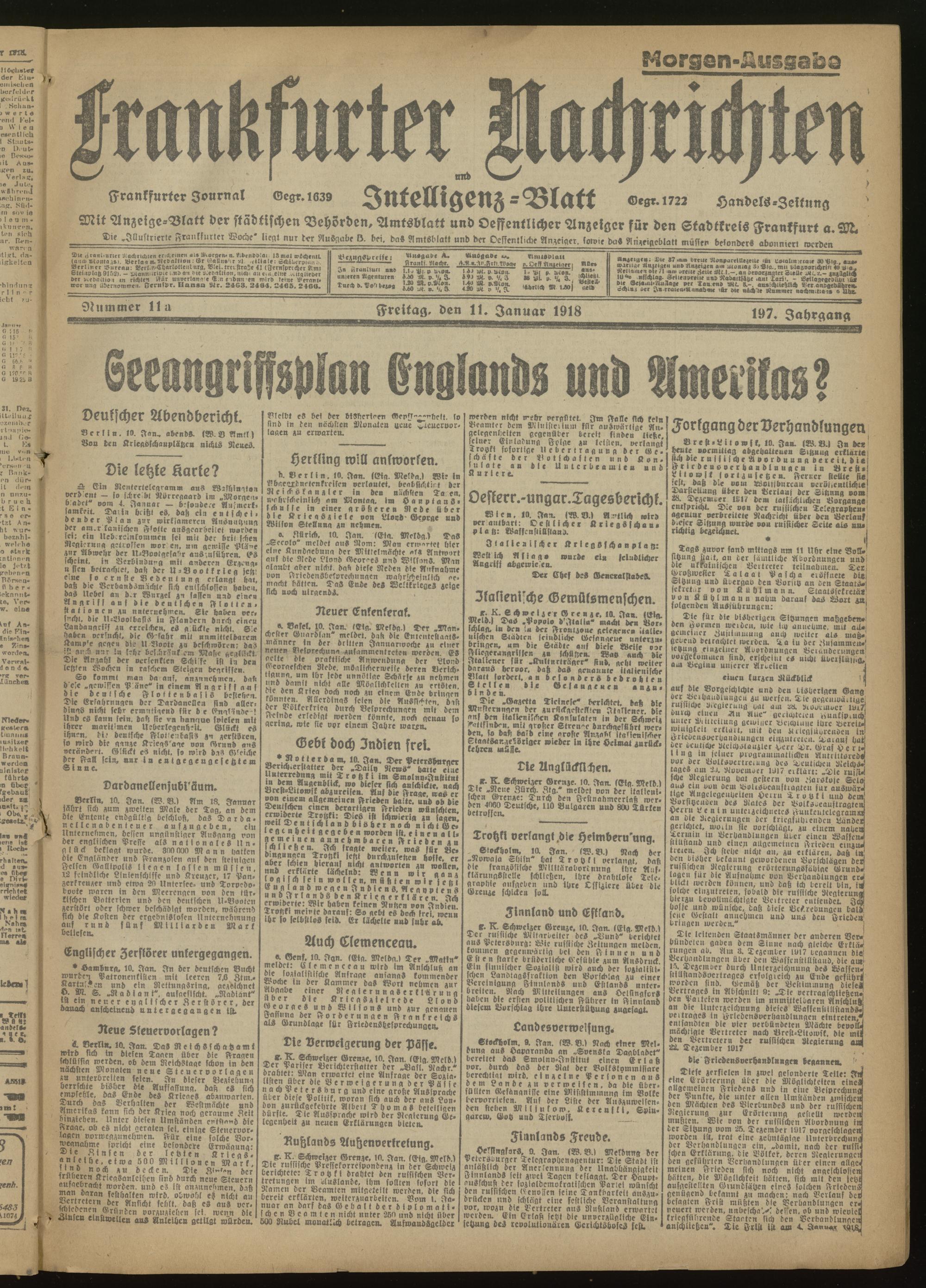 11.01.1918 Morgen-Ausgabe = Nr. 11a