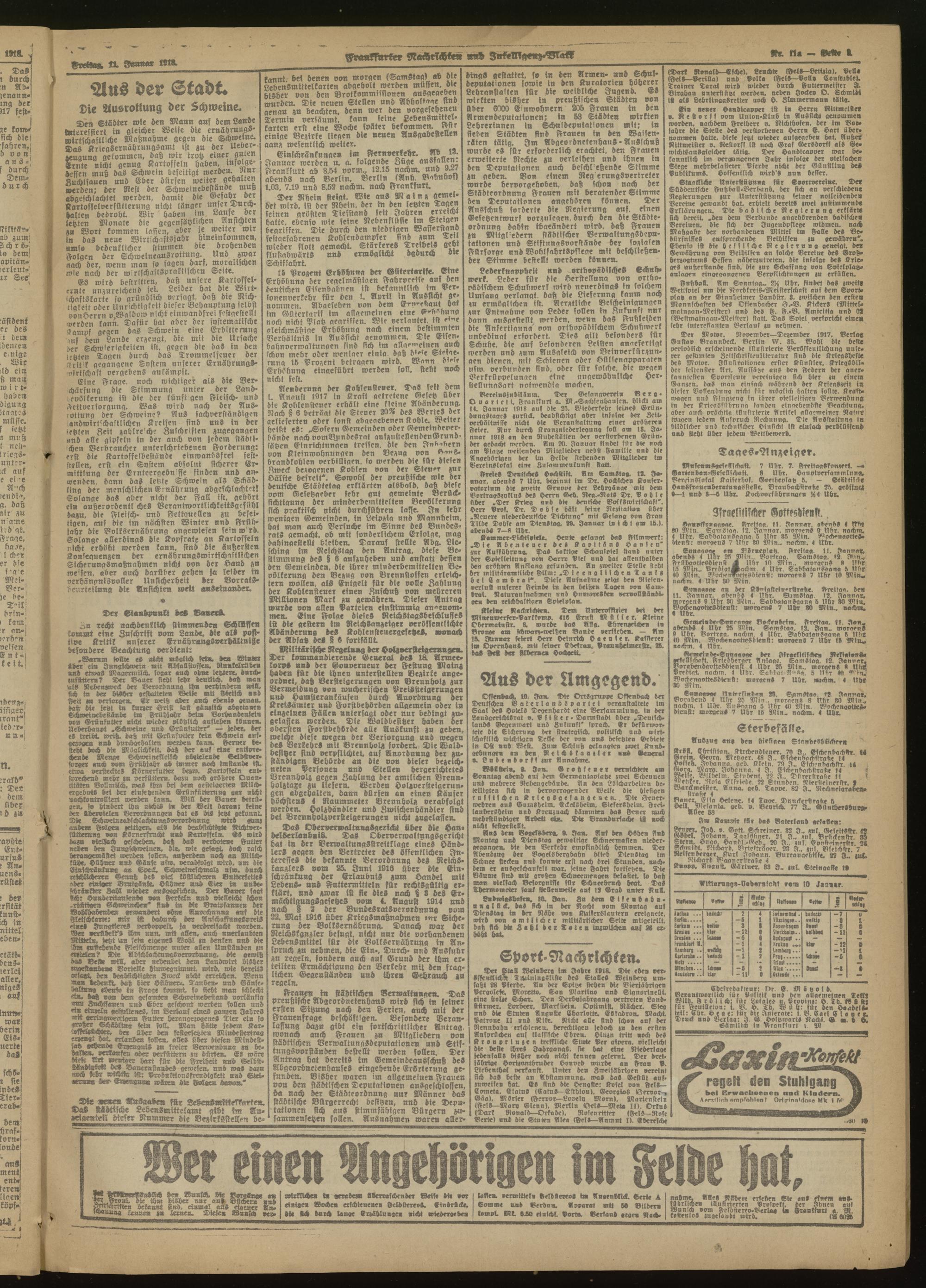 11.01.1918 Morgen-Ausgabe = Nr. 11a