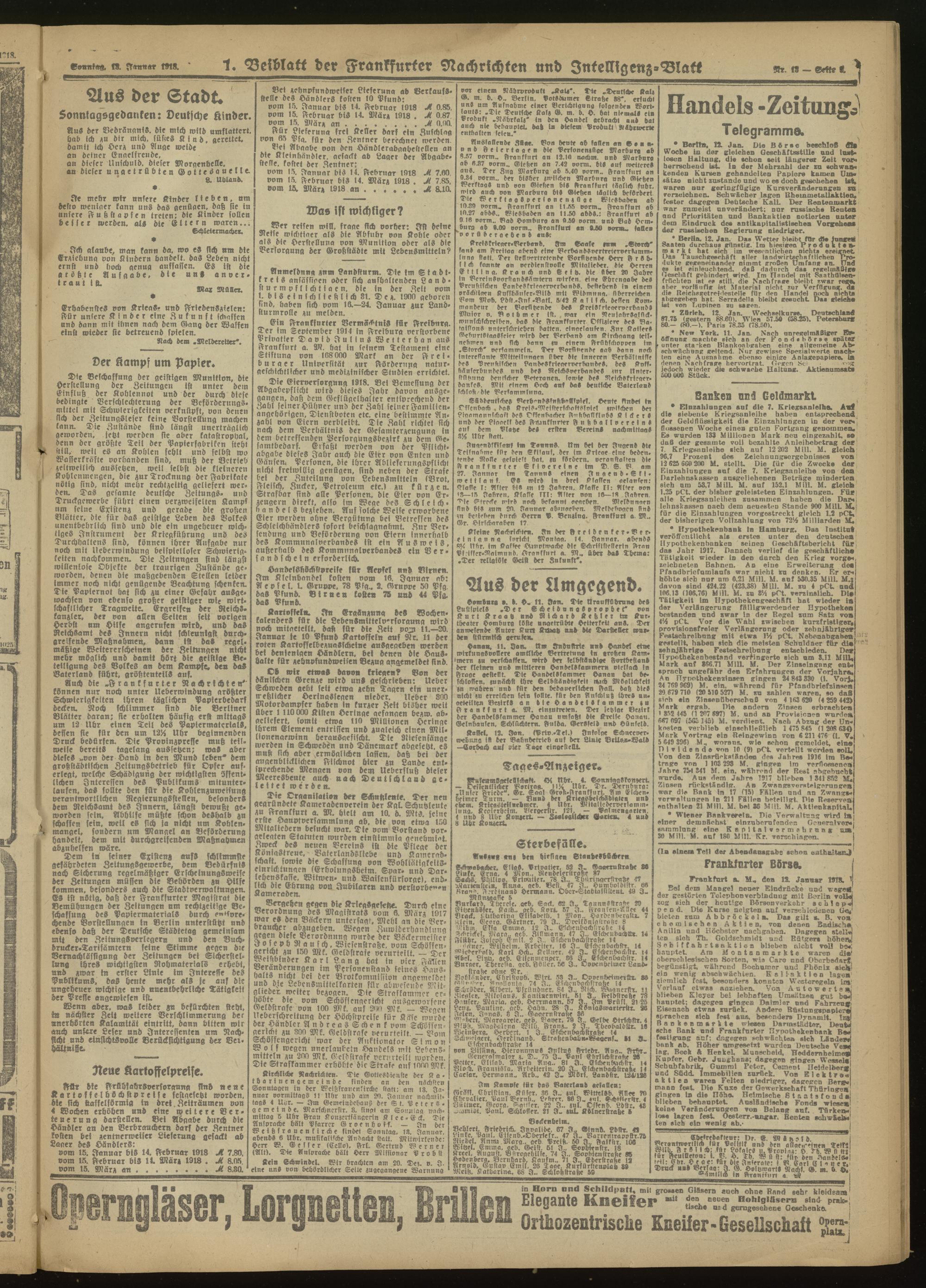 13.01.1918 Morgen-Ausgabe = Nr. 13