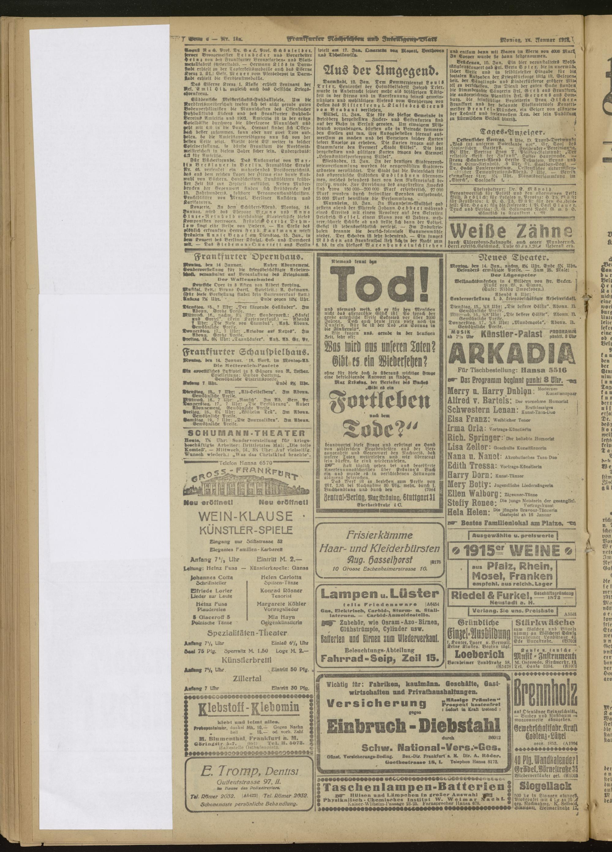 14.01.1918 Morgen-Ausgabe = Nr. 14 a