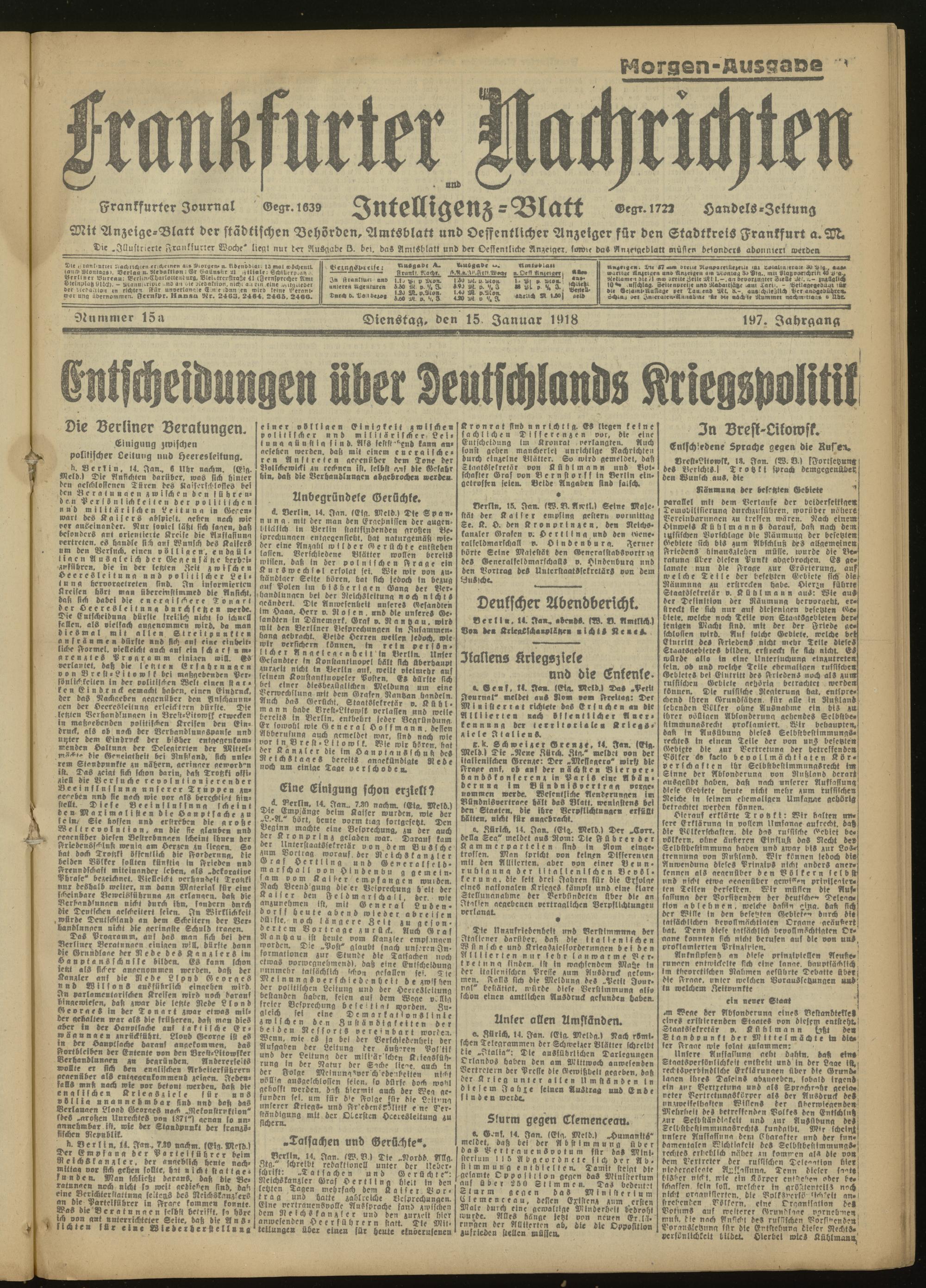 15.01.1918 Morgen-Ausgabe = Nr. 15 a
