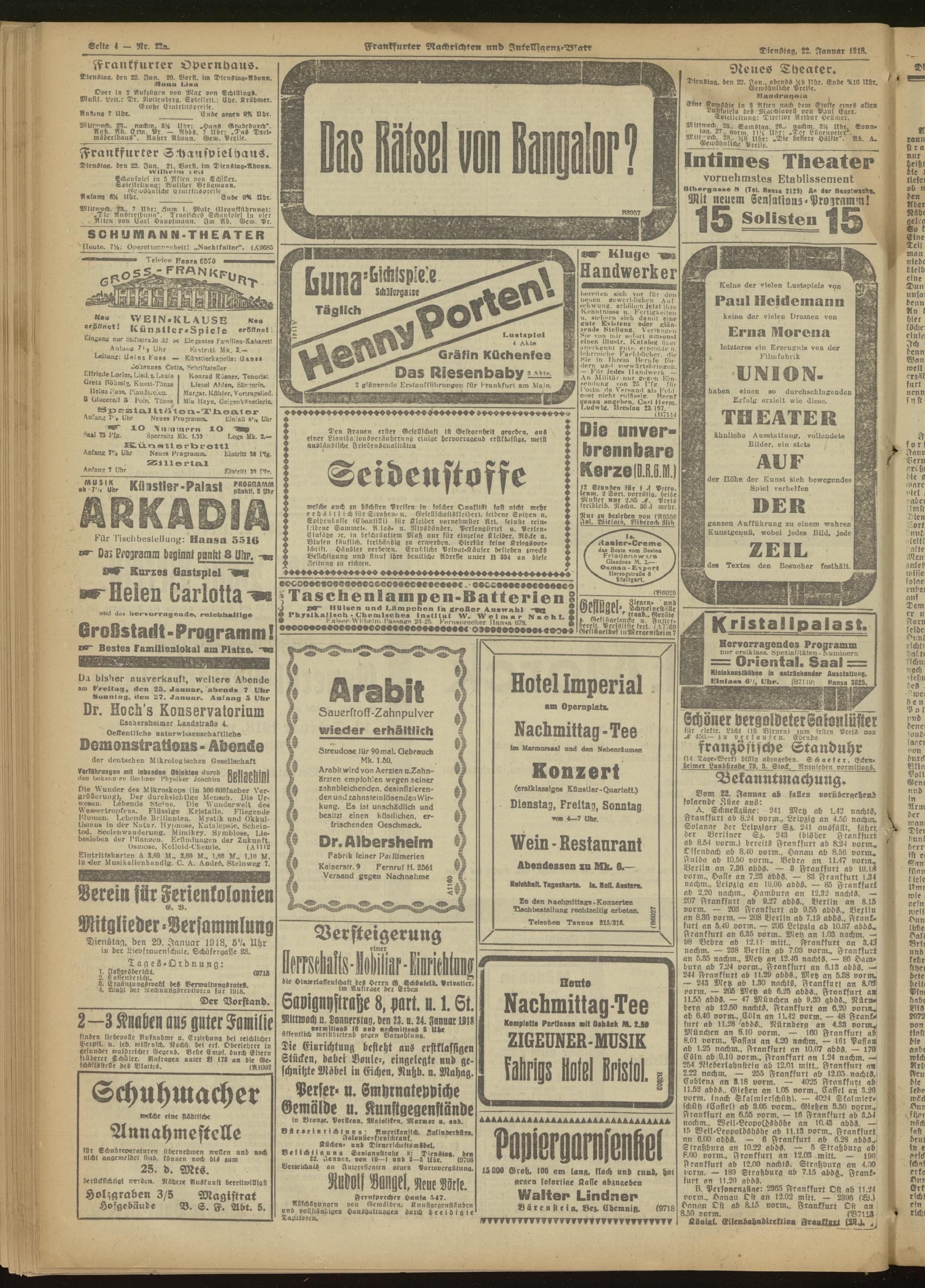 22.01.1918 Morgen-Ausgabe = Nr. 22 a
