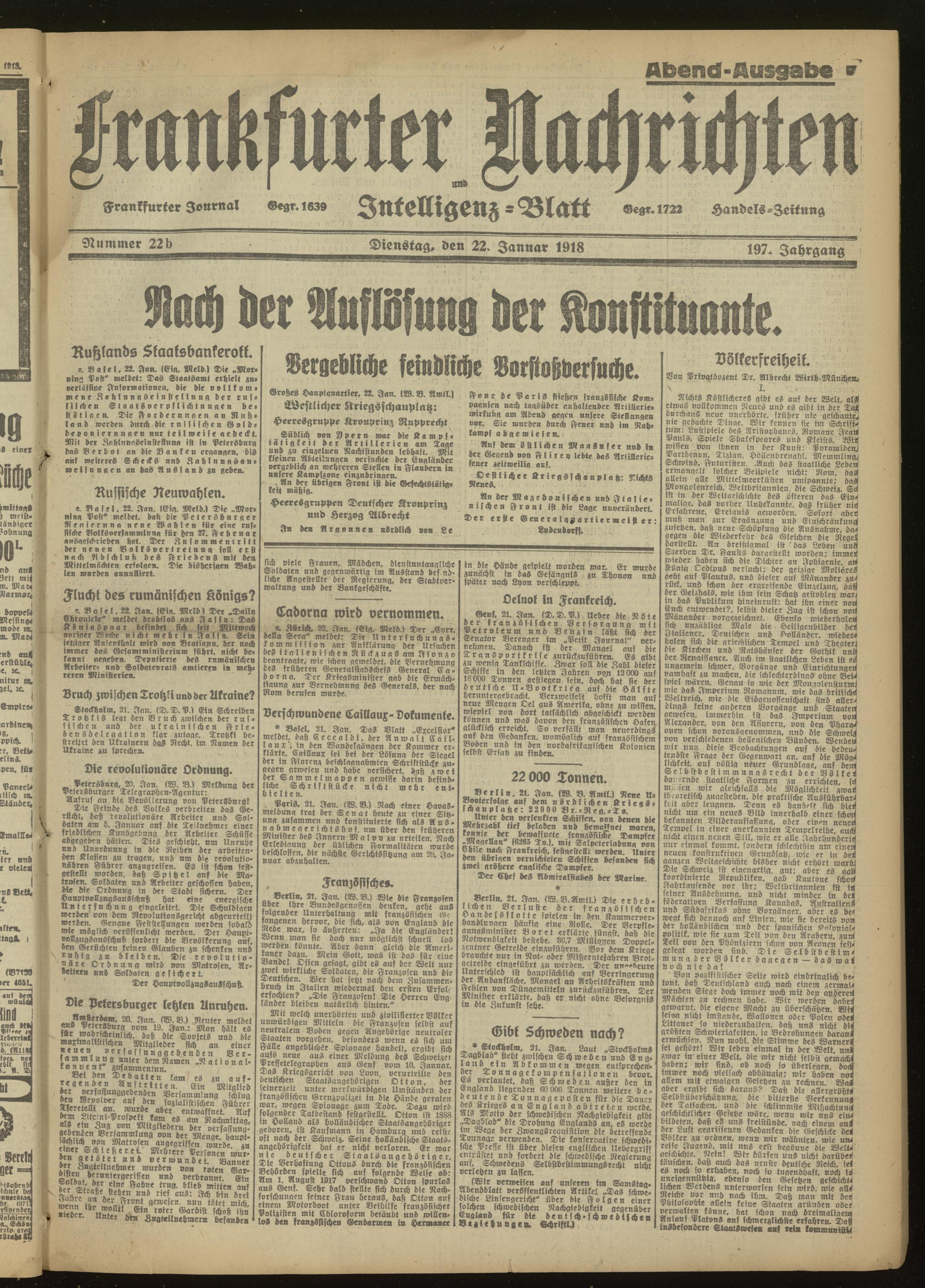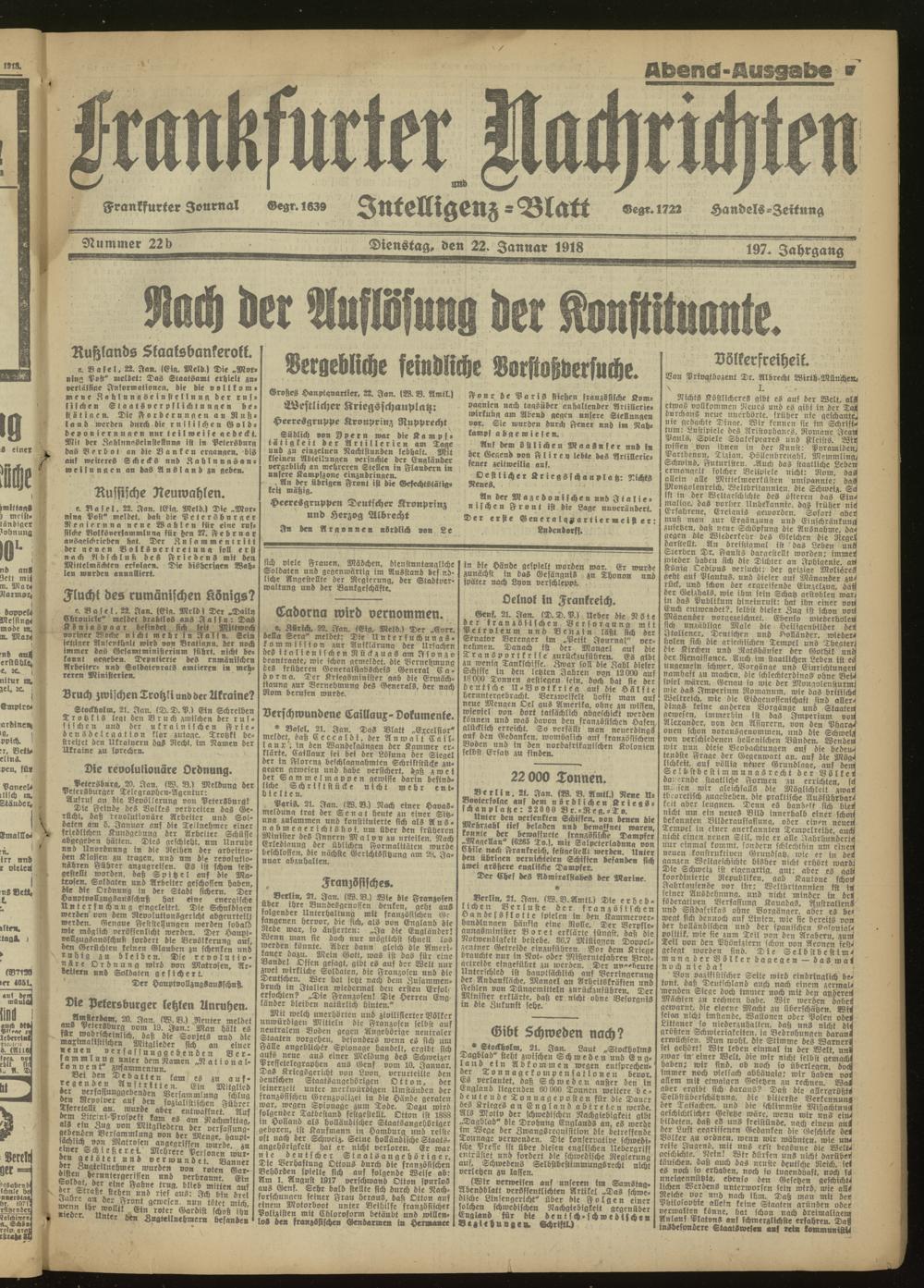 22.01.1918 Abend-Ausgabe = Nr. 22 b