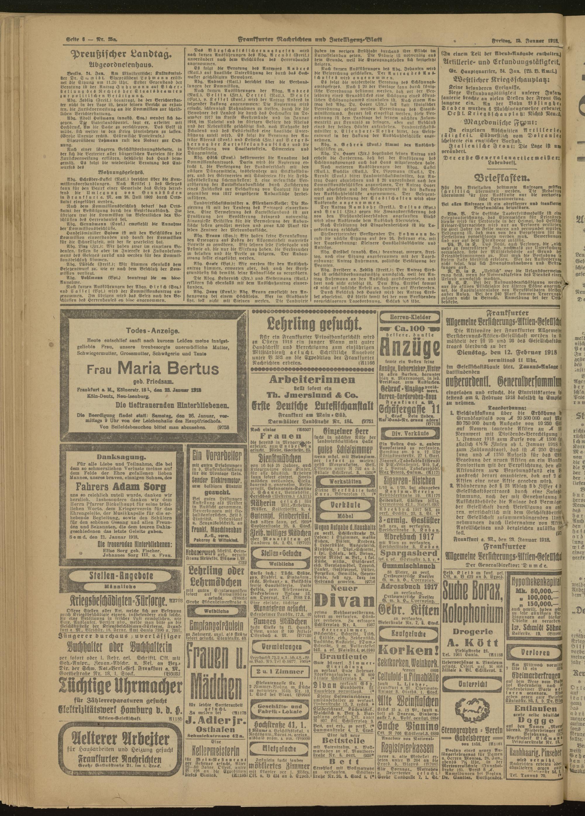 25.01.1918 Morgen-Ausgabe = Nr. 25 a