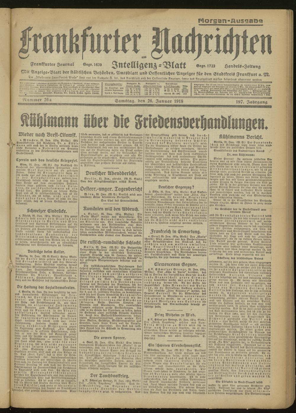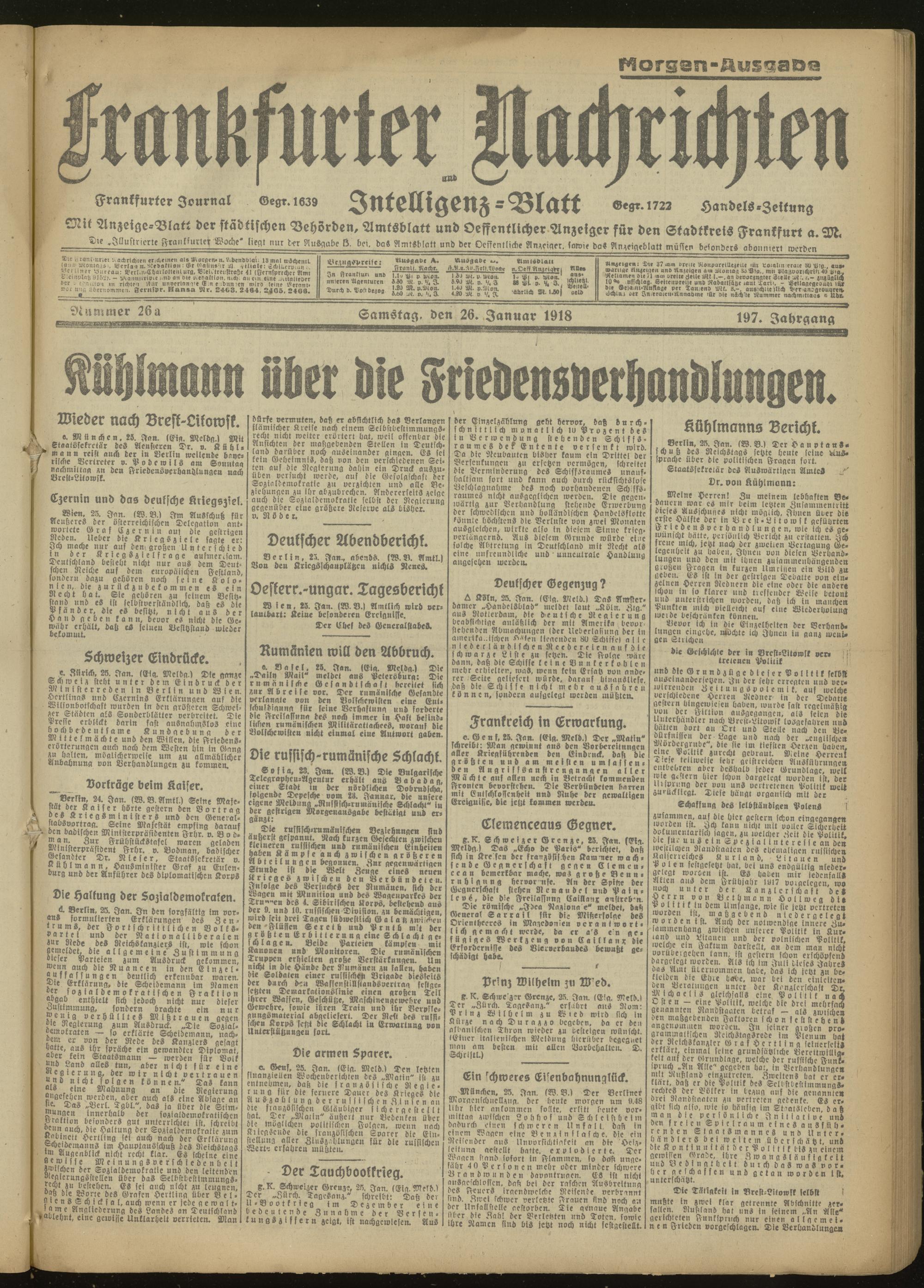 26.01.1918 Morgen-Ausgabe = Nr. 26 a