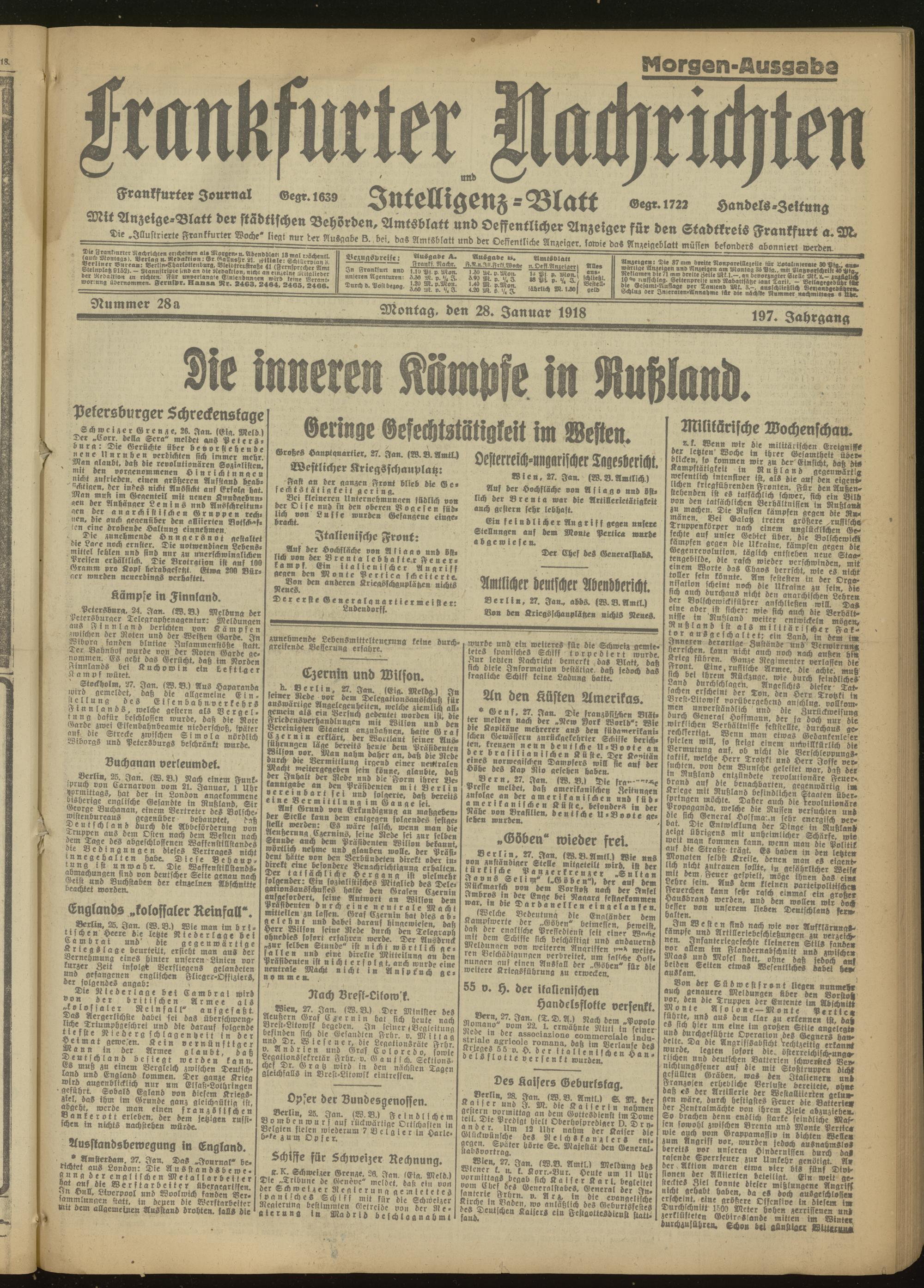 28.01.1918 Morgen-Ausgabe = Nr. 28 a