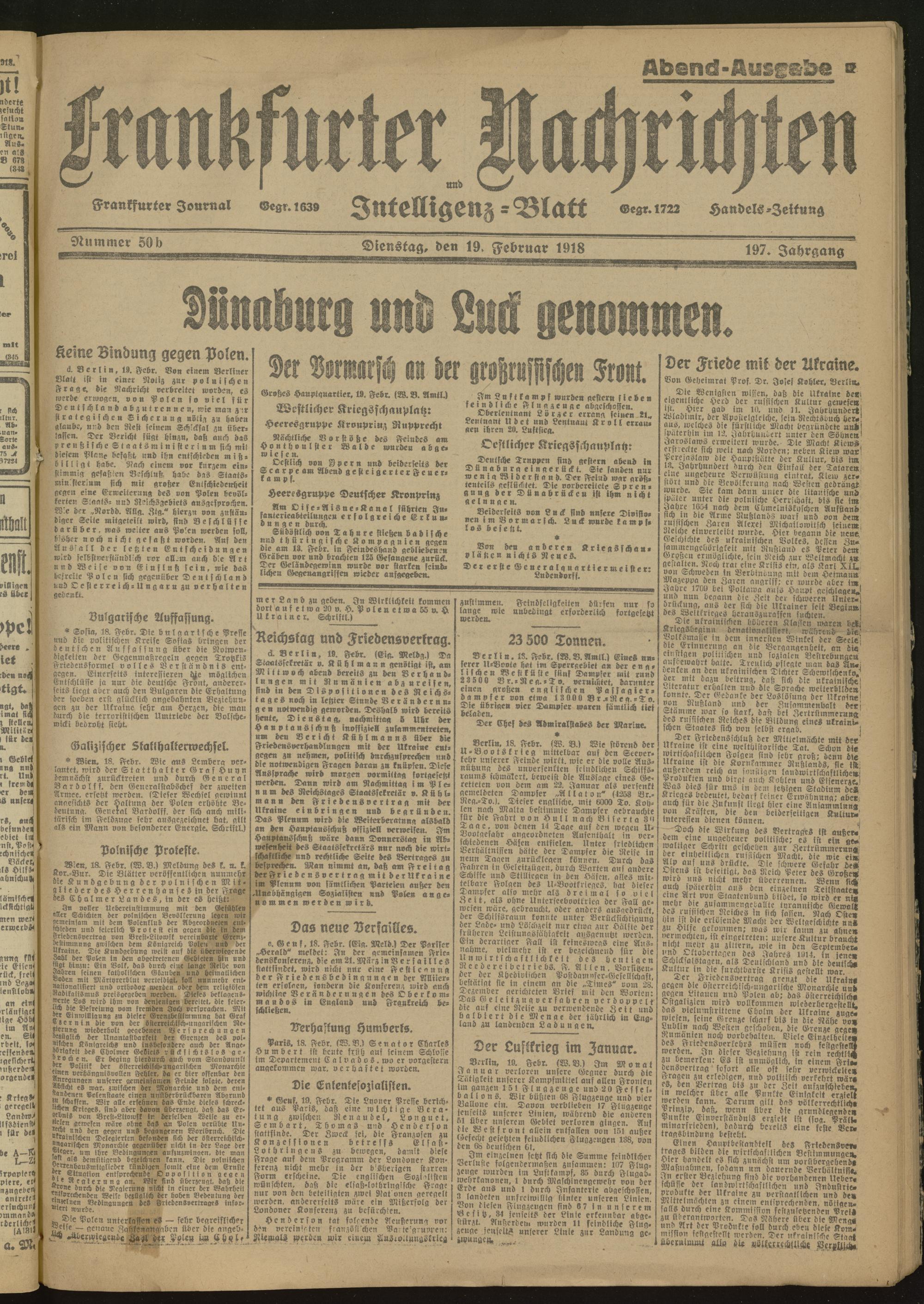19.02.1918 Abend-Ausgabe = Nr. 50 b