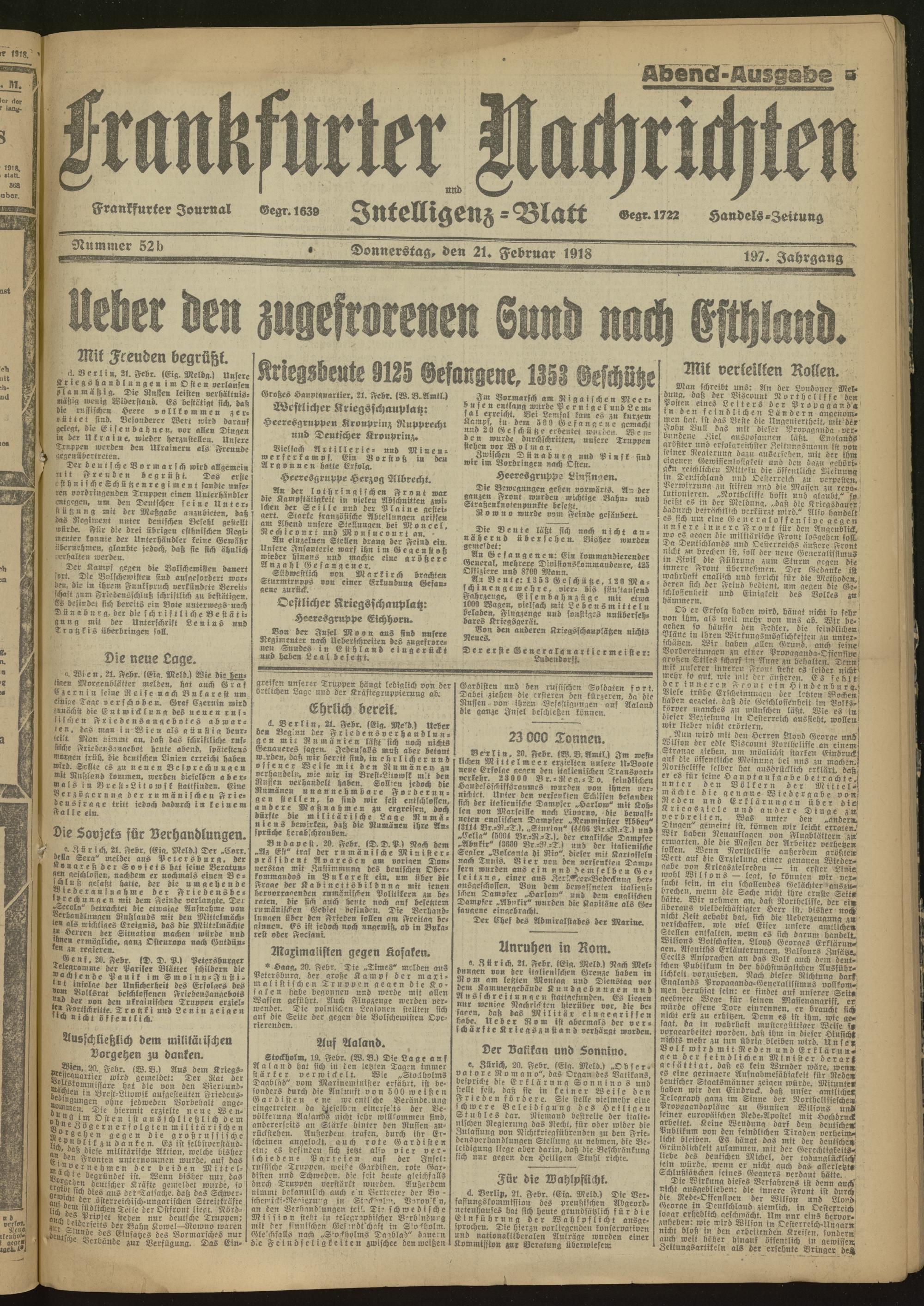 21.02.1918 Abend-Ausgabe = Nr. 52 b