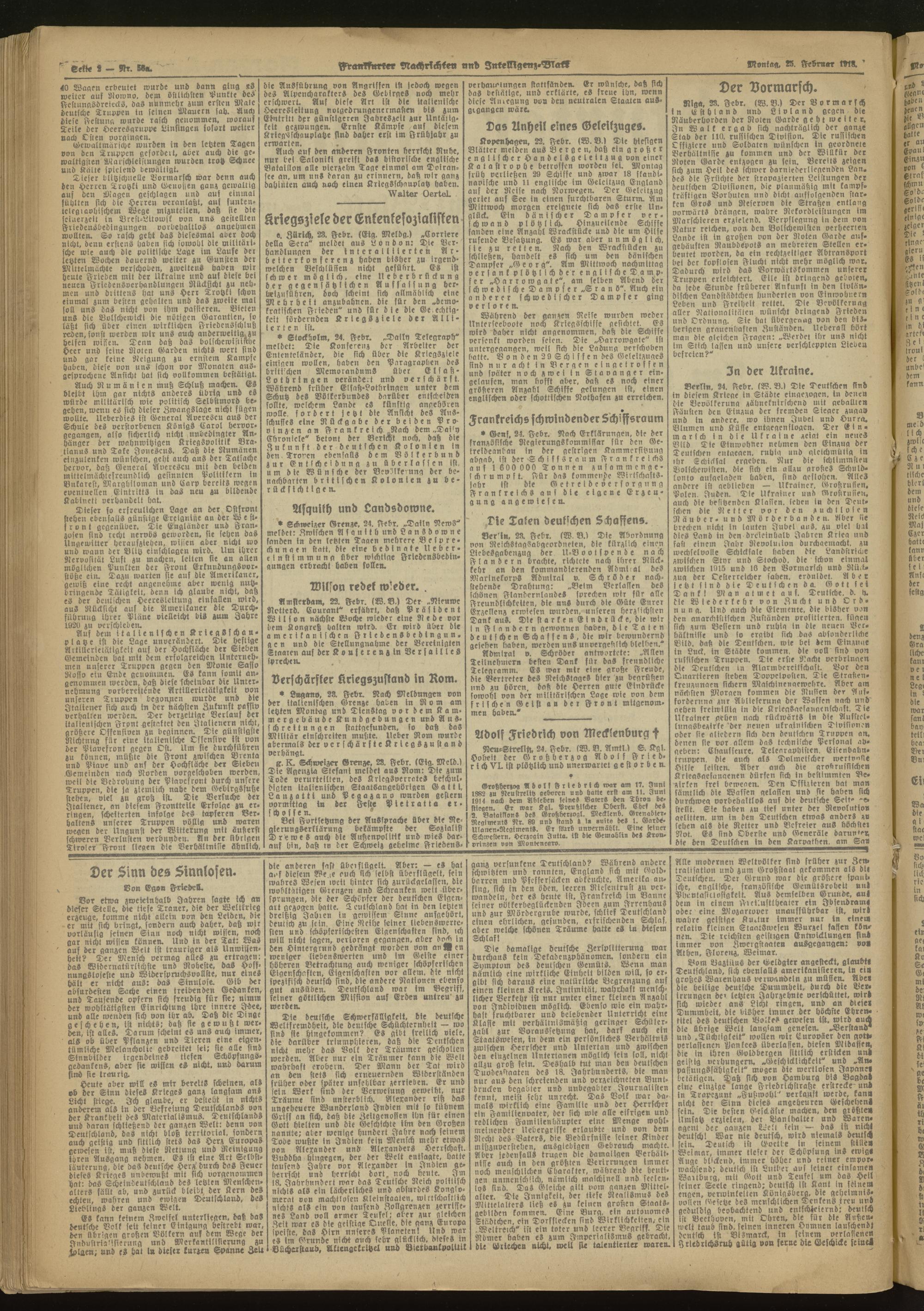 25.02.1918 Morgen- Ausgabe = Nr. 56 a