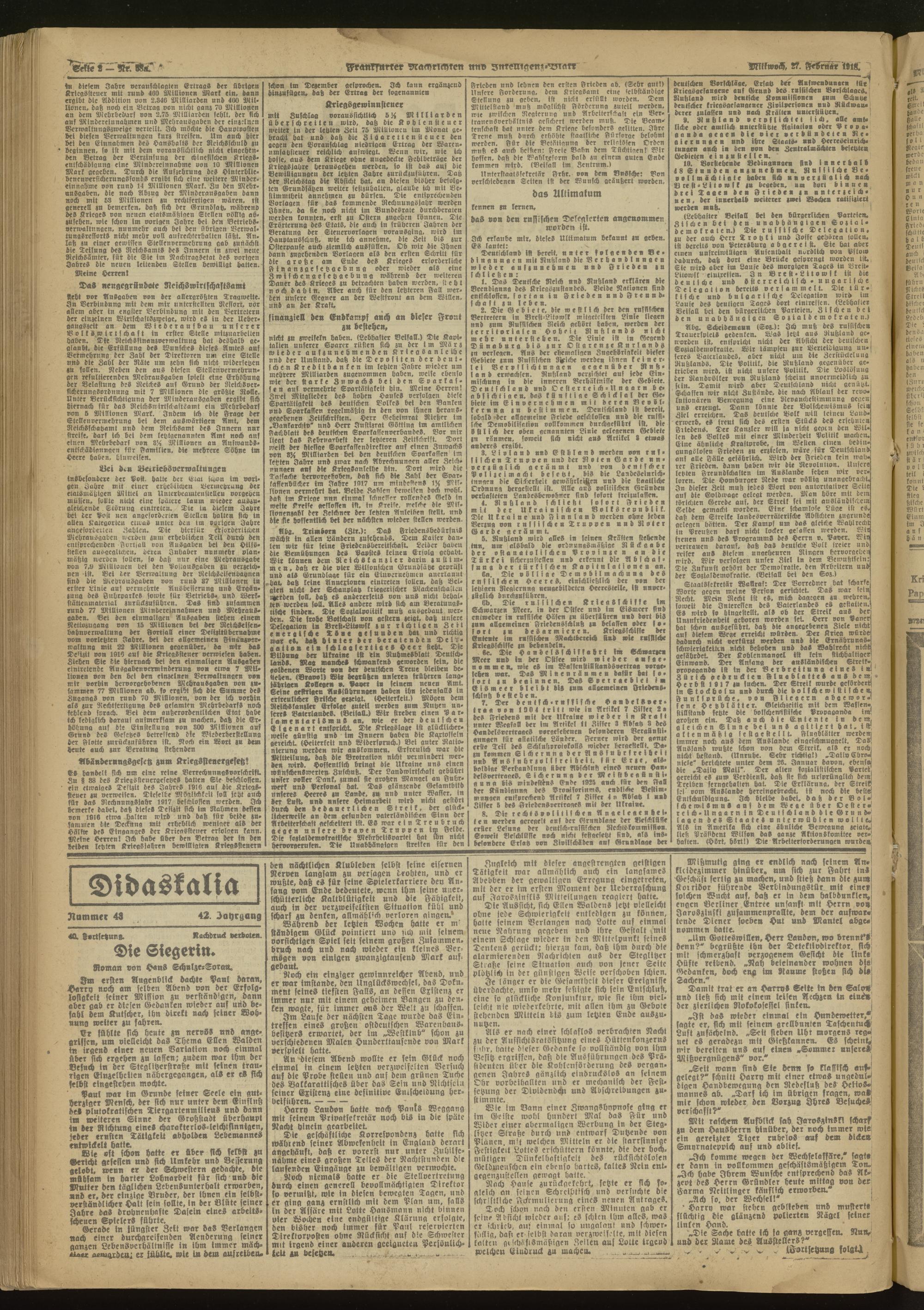 27.02.1918 Morgen-Ausgabe = Nr. 58 a