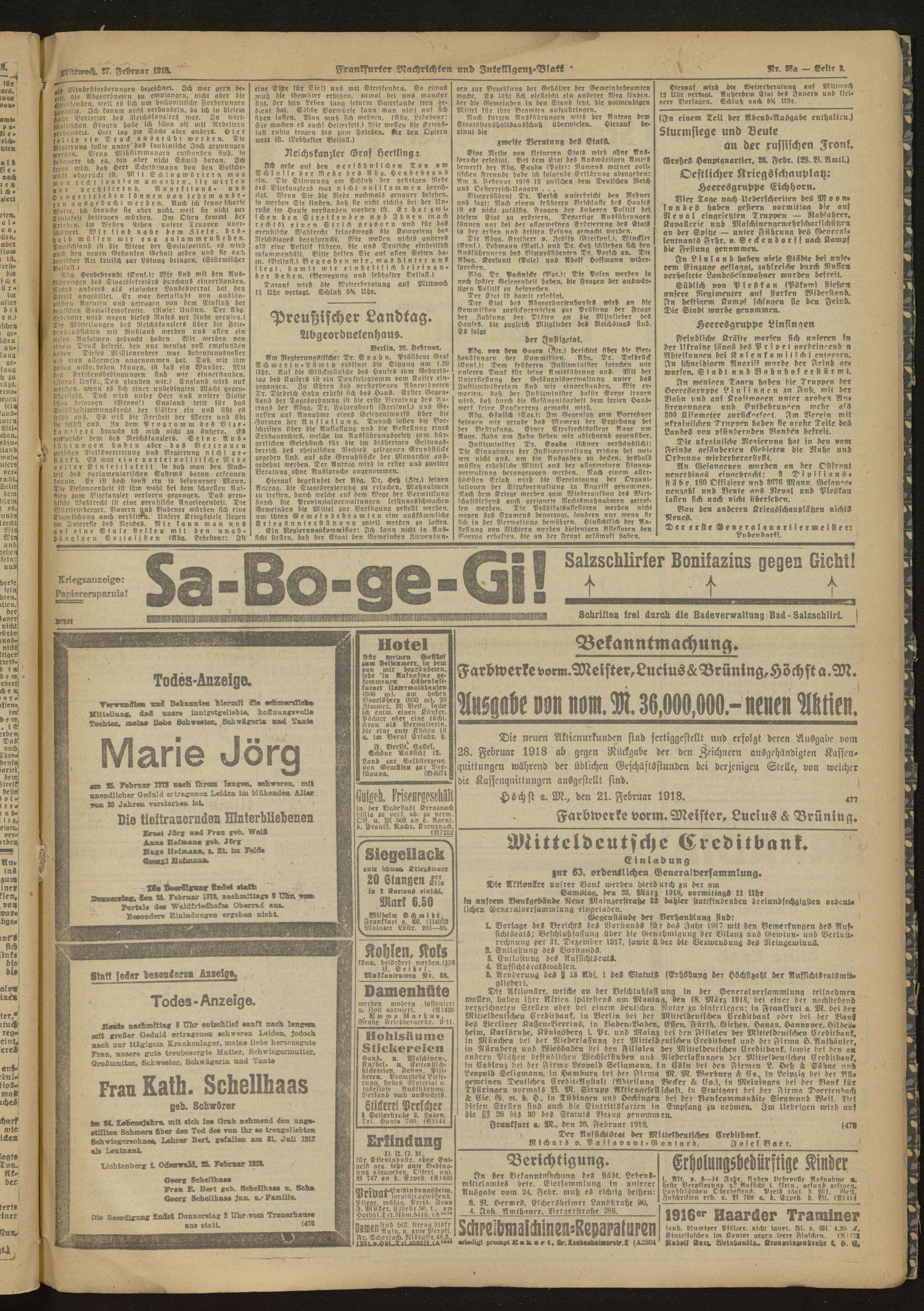 27.02.1918 Morgen-Ausgabe = Nr. 58 a