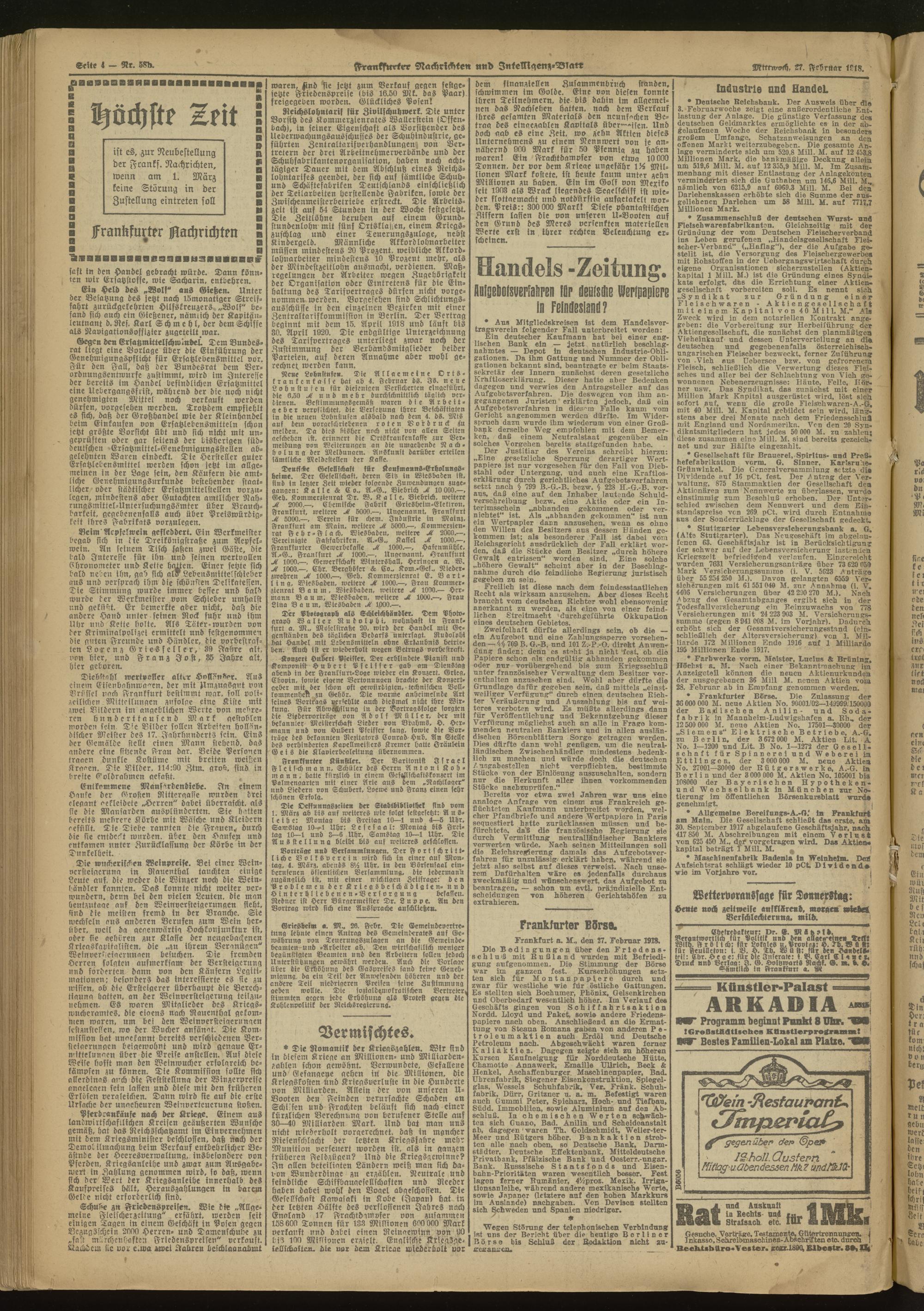 27.02.1918 Abend-Ausgabe = Nr. 58 b