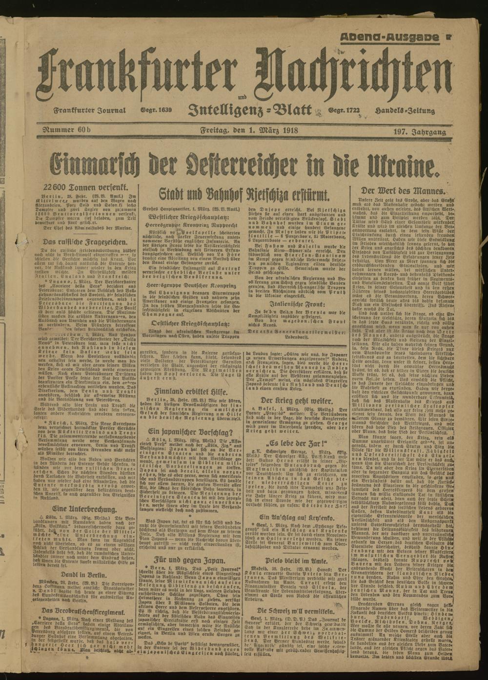01.03.1918 Abend-Ausgabe = Nr. 60 b