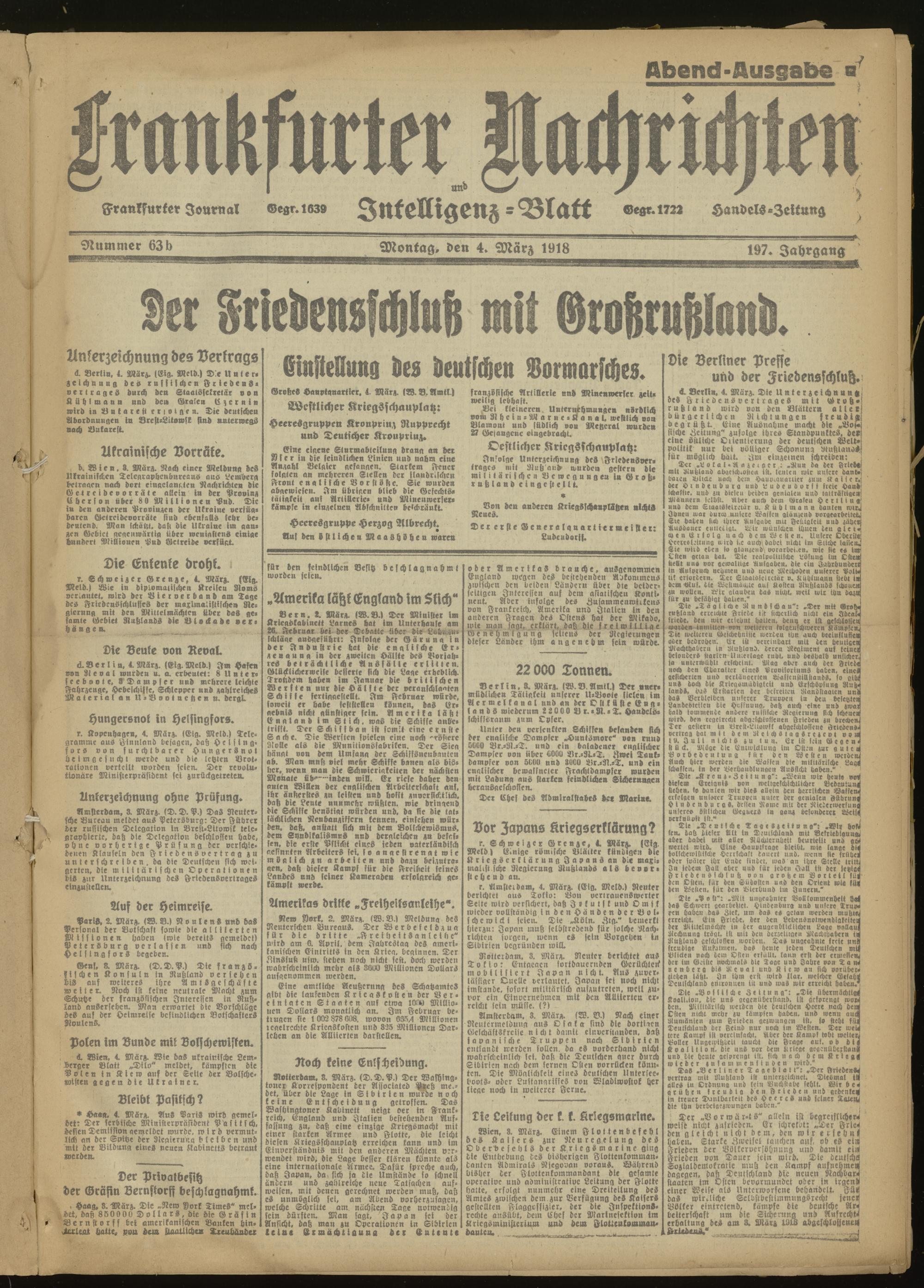 04.03.1918 Abend-Ausgabe = Nr. 63 b