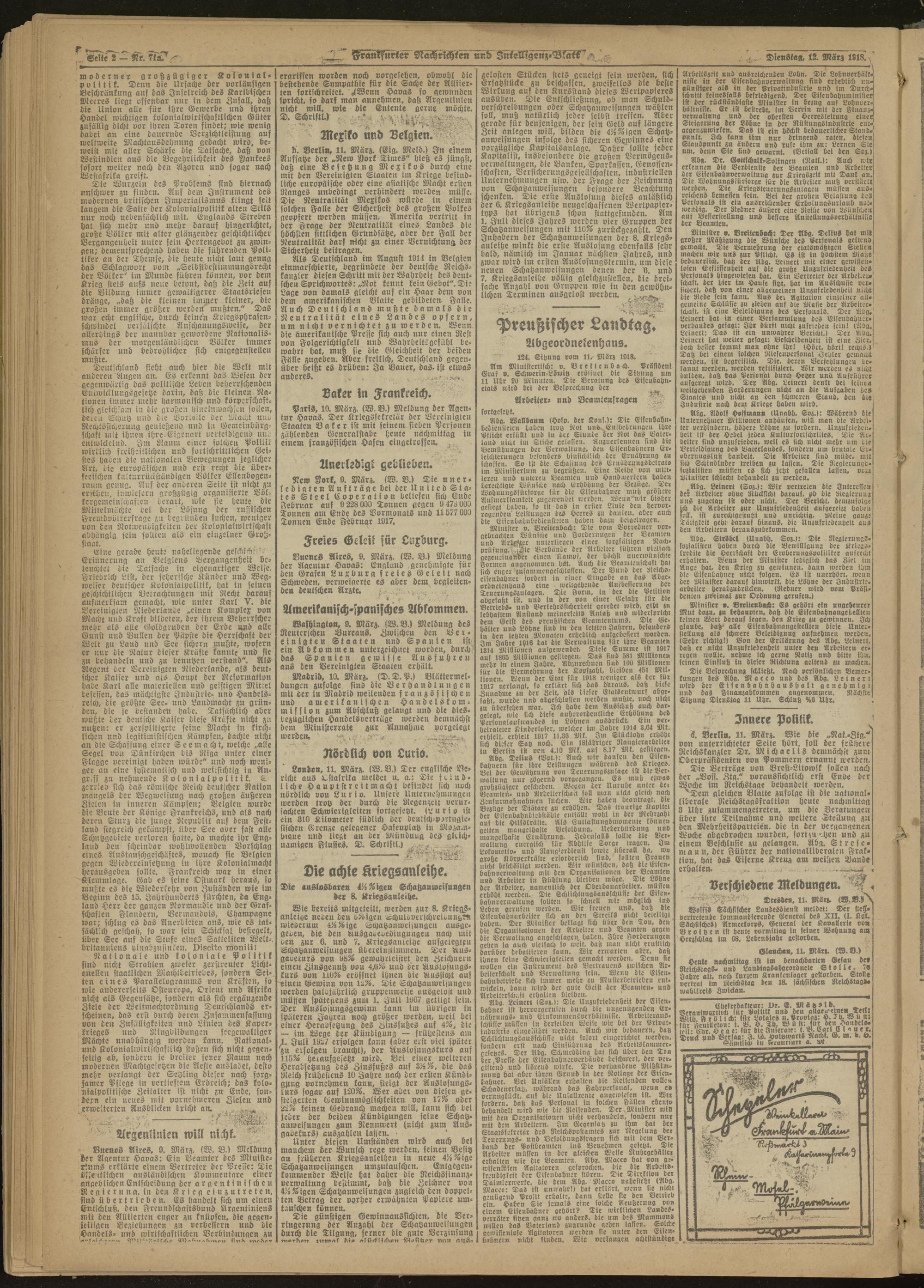 12.03.1918 Morgen-Ausgabe = Nr. 71 a