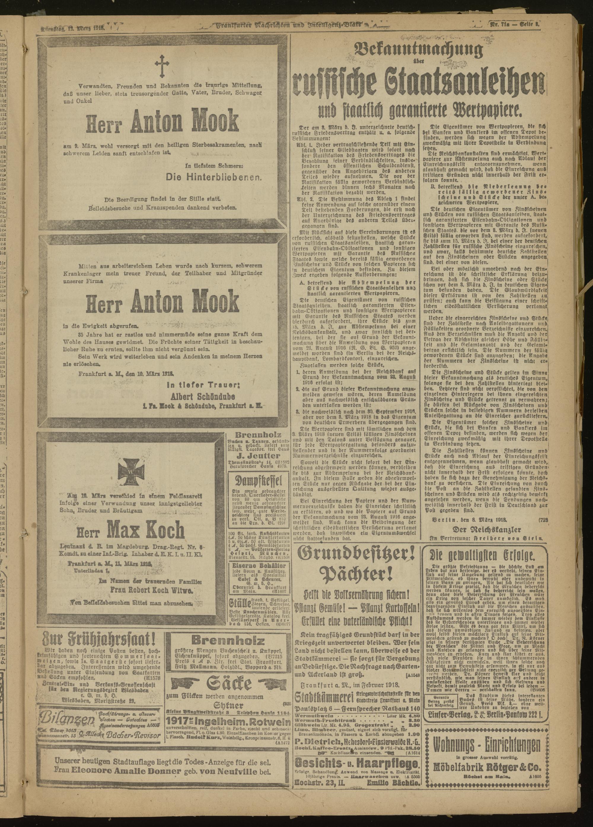 12.03.1918 Morgen-Ausgabe = Nr. 71 a