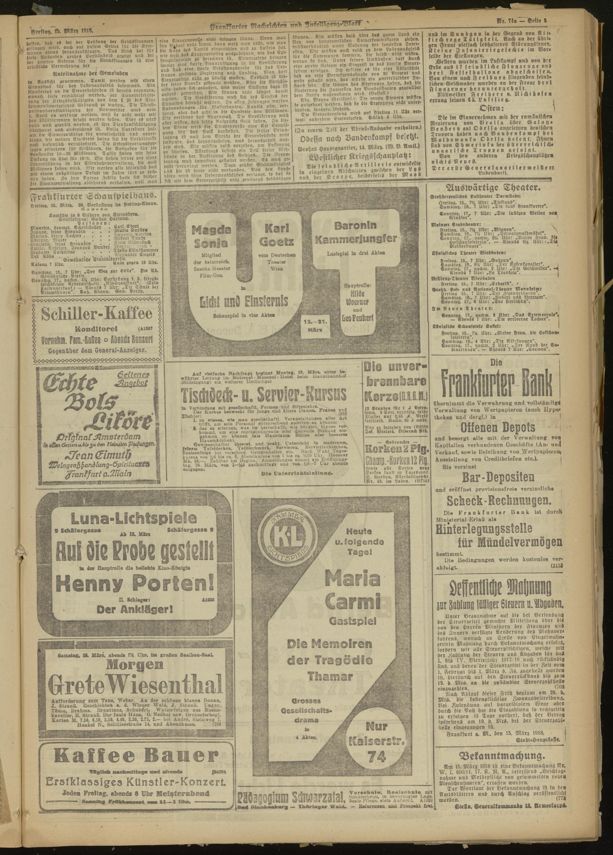 15.03.1918 Morgen-Ausgabe = Nr. 74 a
