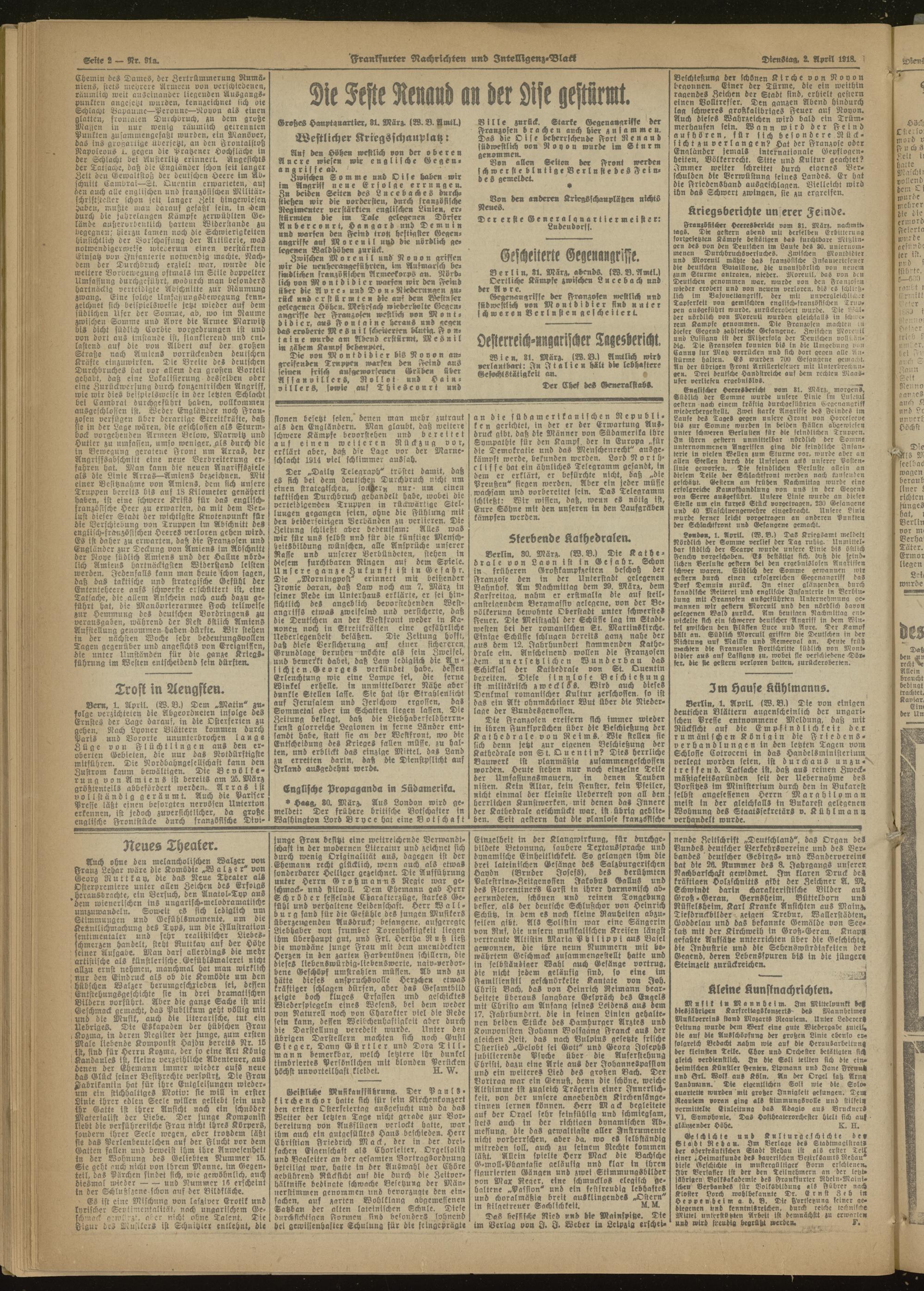 02.04.1918 Morgen-Ausgabe = Nr. 91 a