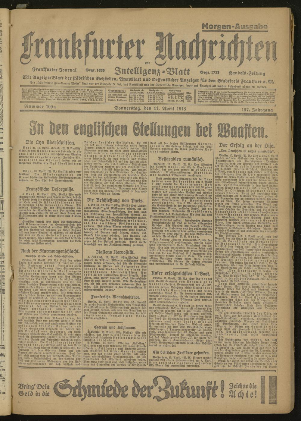 11.04.1918 Morgen-Ausgabe = Nr. 100 a
