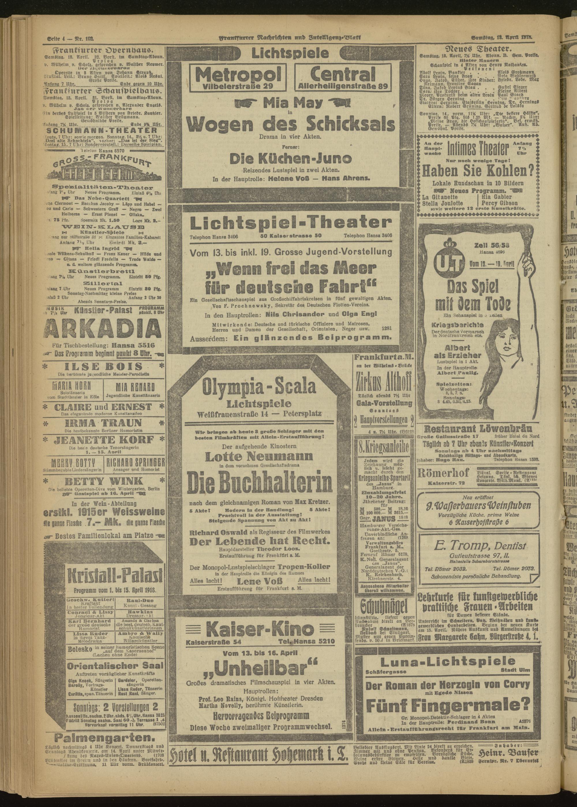 13.04.1918 Morgen-Ausgabe = Nr. 102