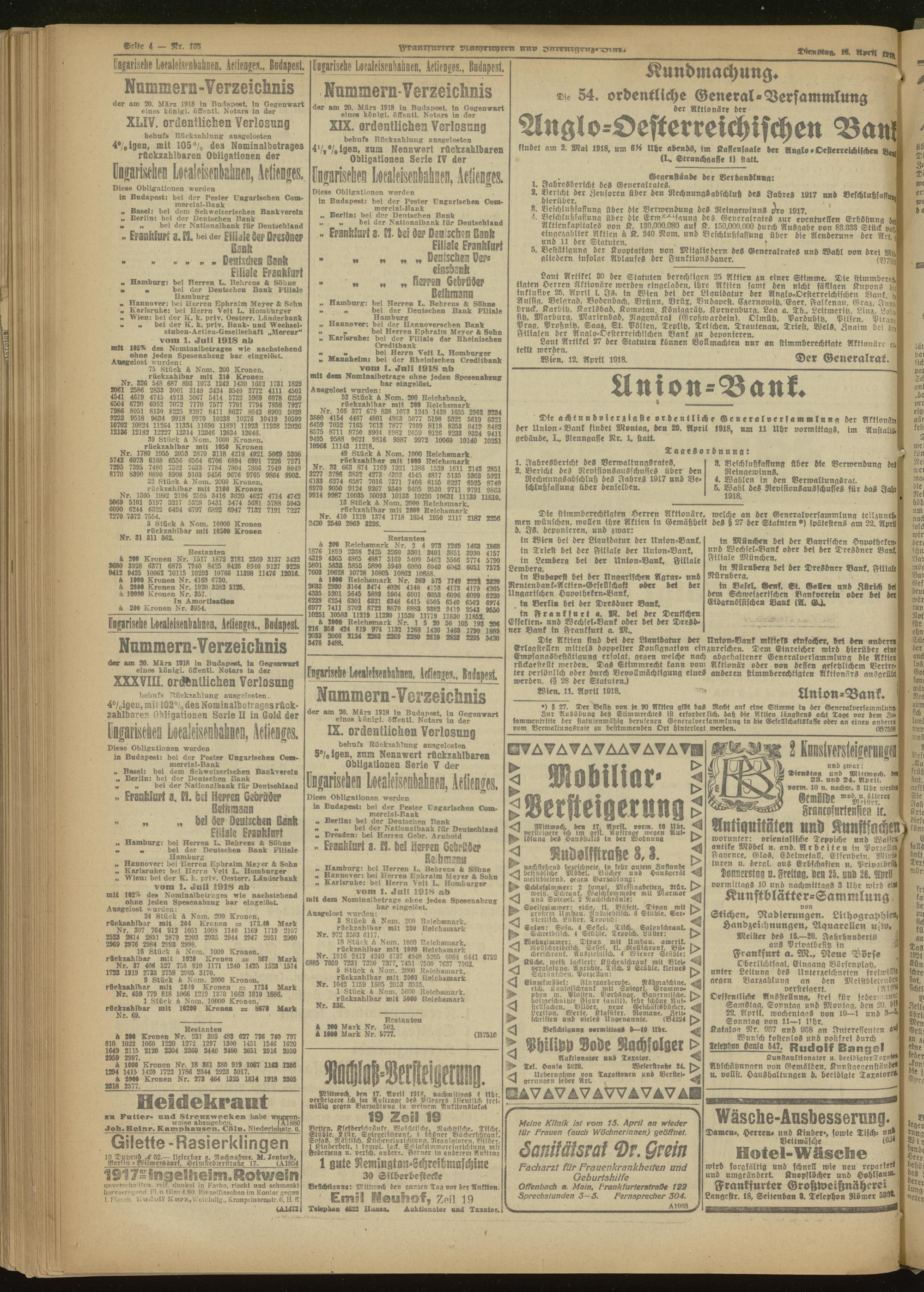 16.04.1918 Morgen-Ausgabe = Nr. 105