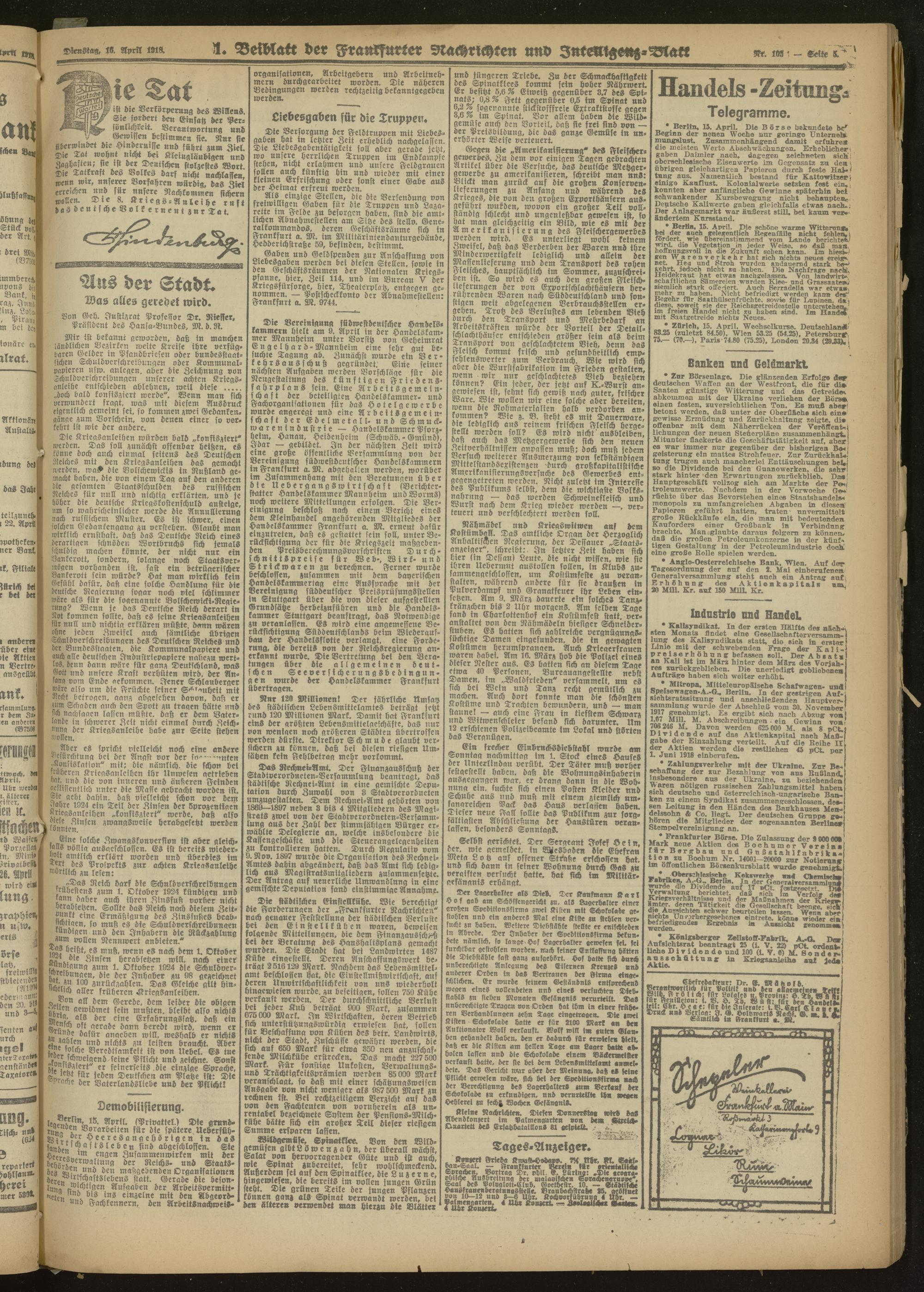 16.04.1918 Morgen-Ausgabe = Nr. 105