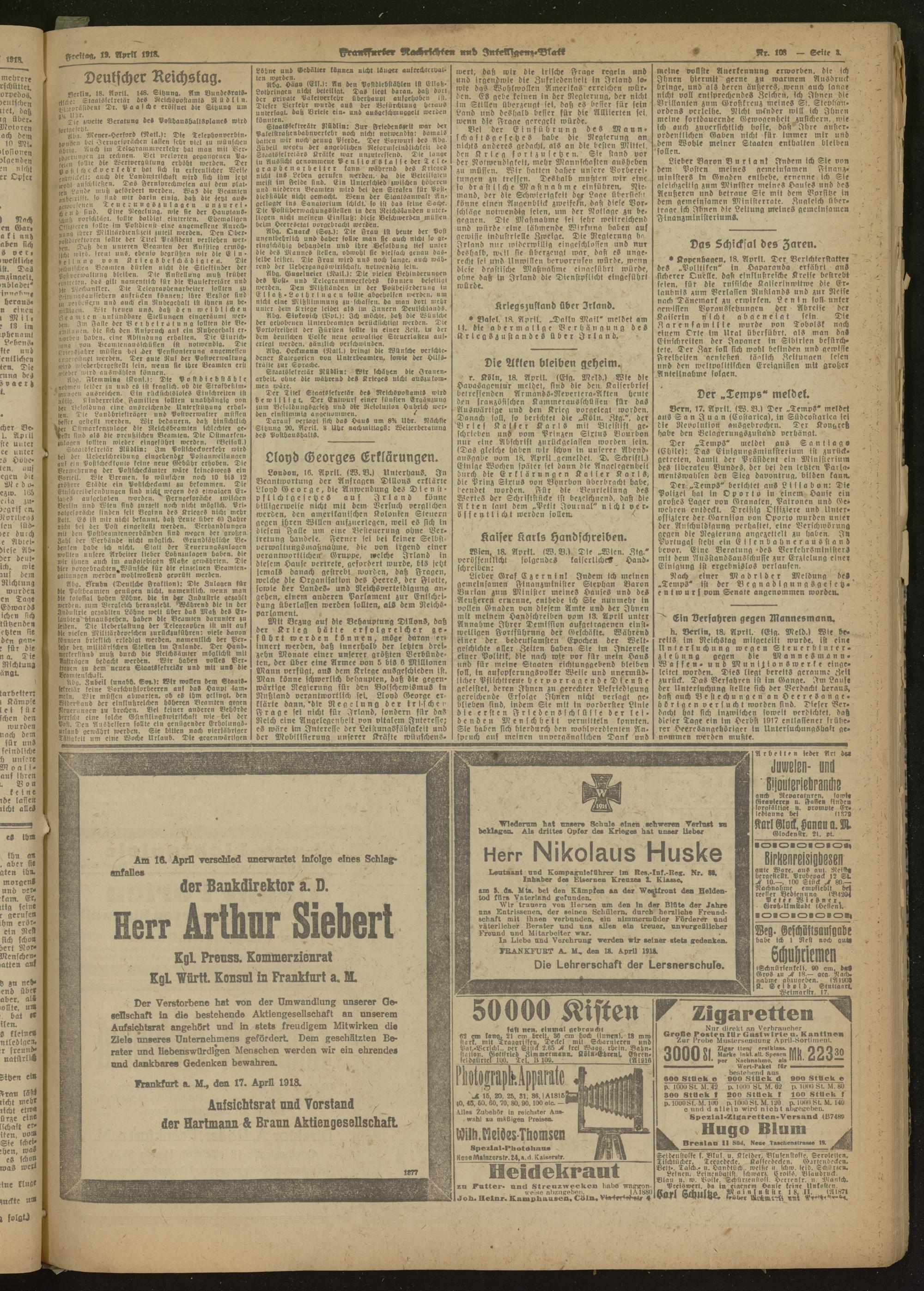 19.04.1918 Morgen-Ausgabe = Nr. 108