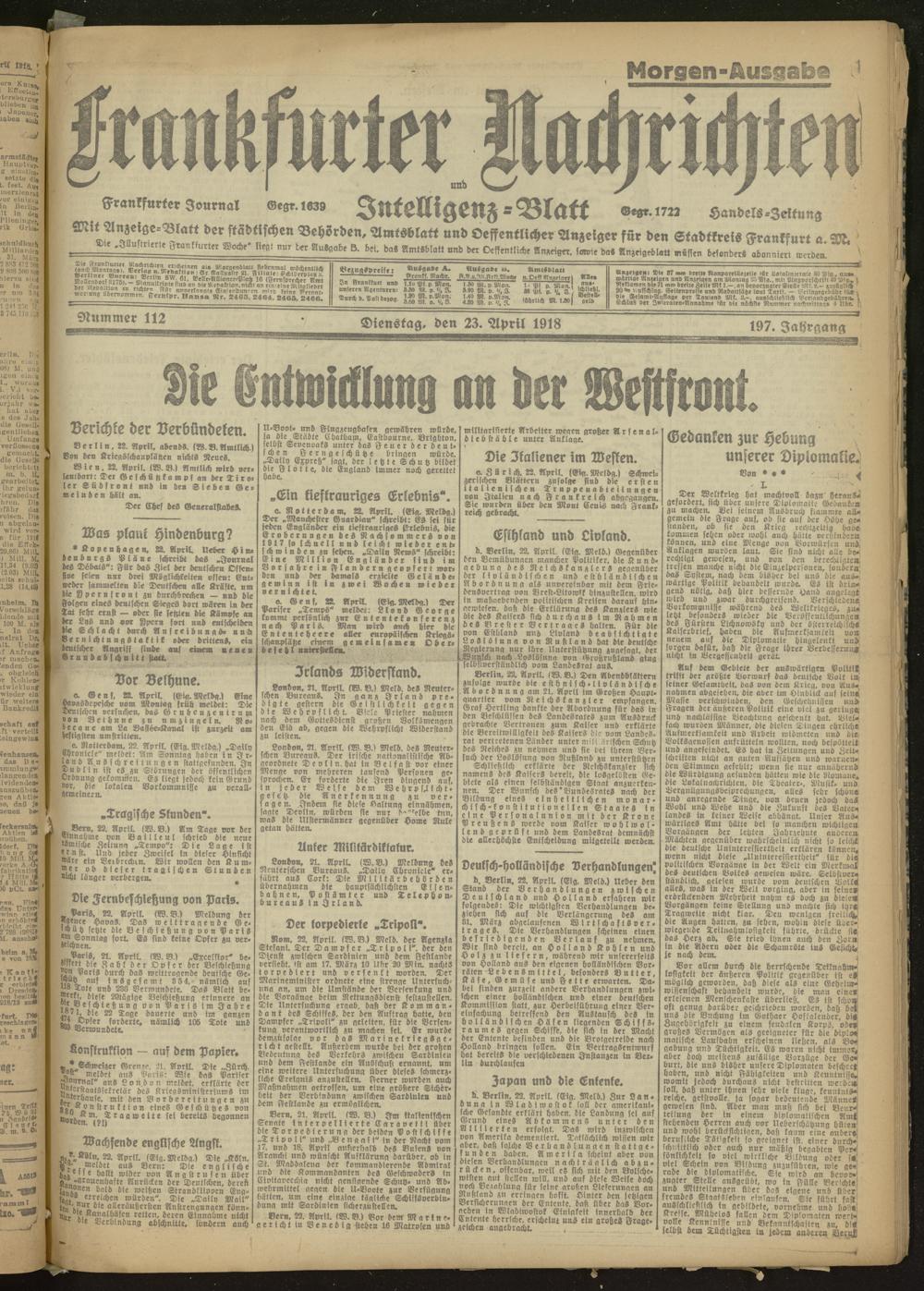 23.04.1918 Morgen-Ausgabe = Nr. 112
