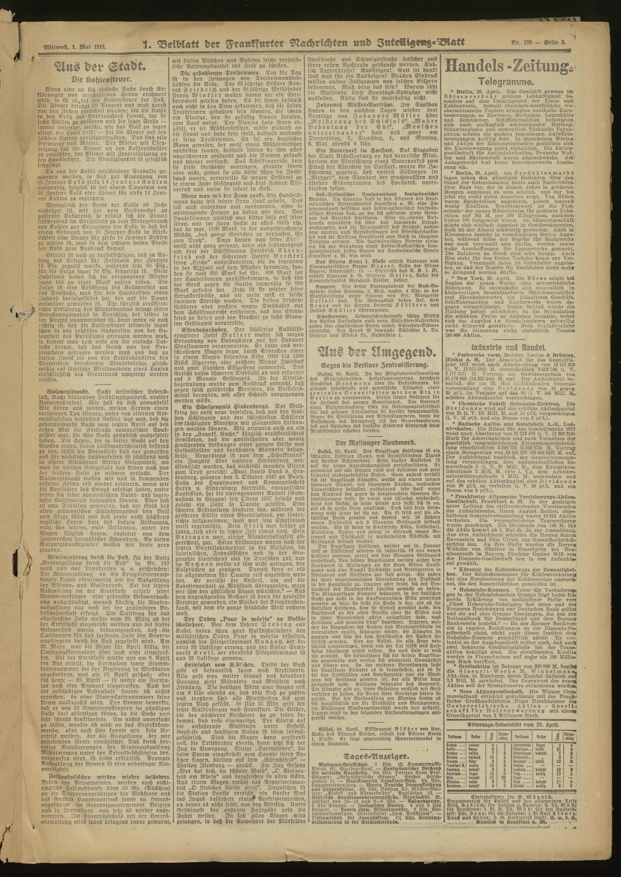 01.05.1918 Morgen-Ausgabe = Nr. 120