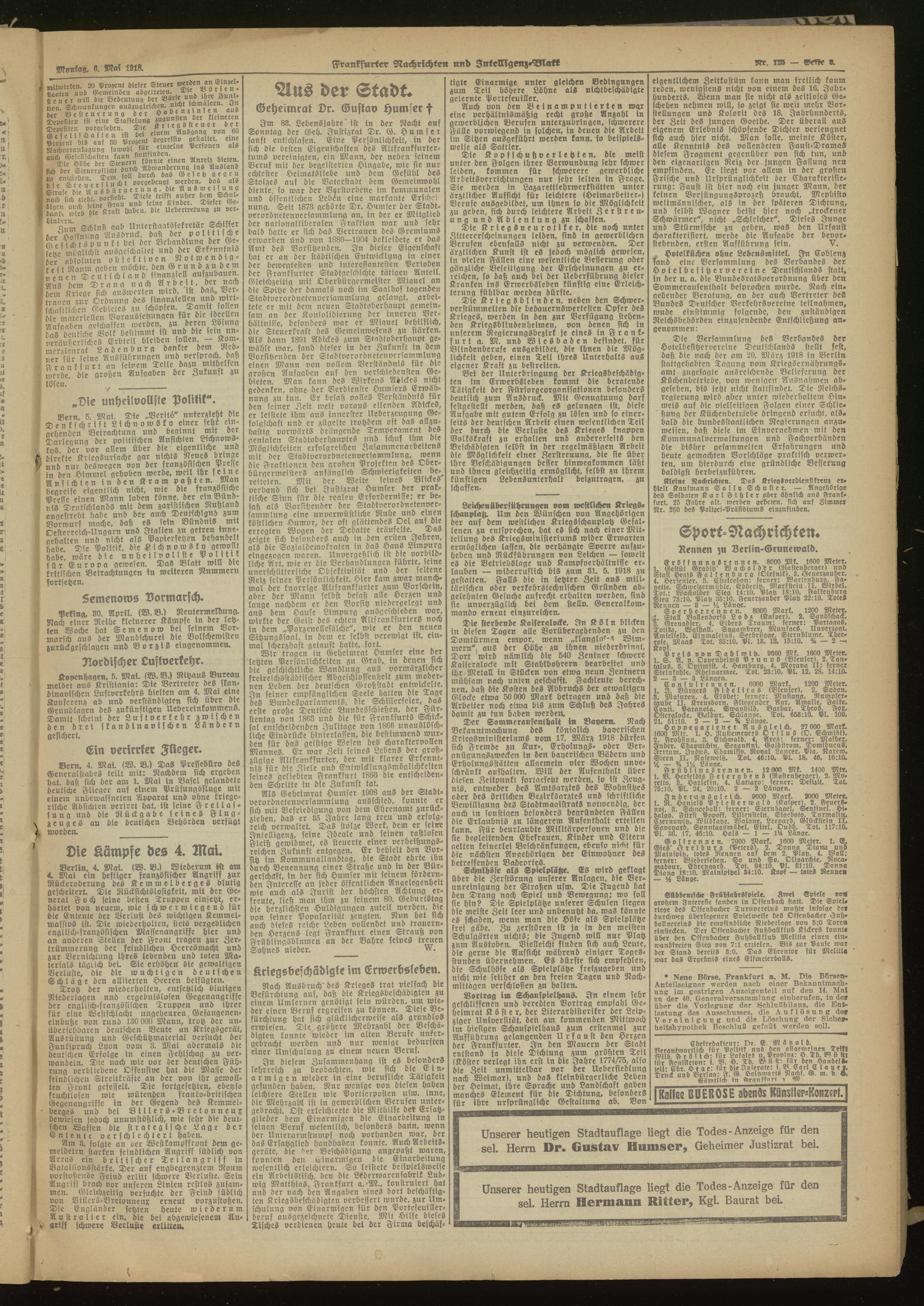 06.05.1918 Morgen-Ausgabe = Nr. 125