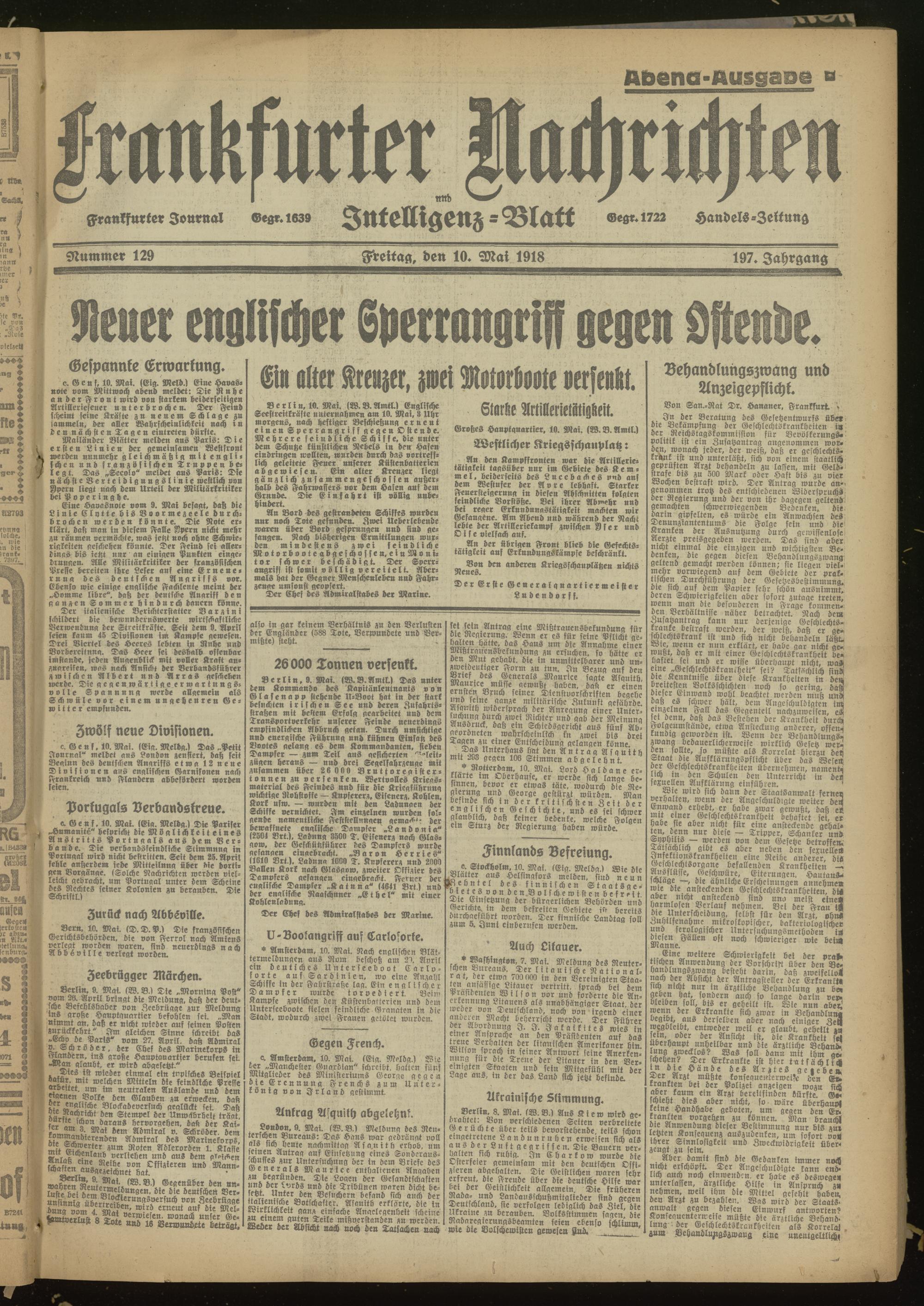 10.05.1918 Abend-Ausgabe = Nr. 129
