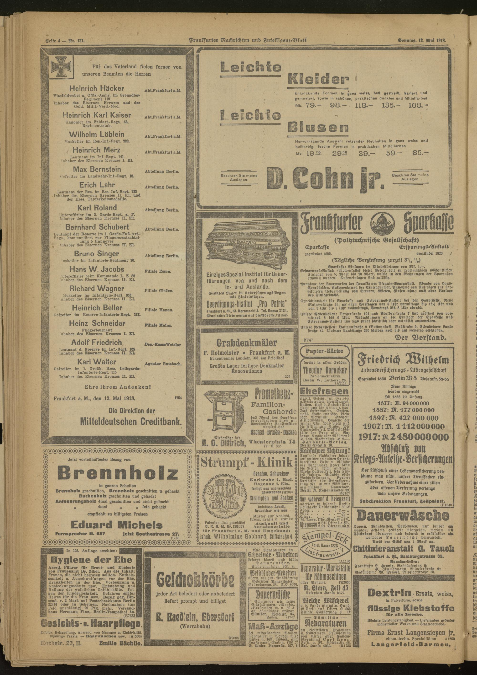 12.05.1918 Morgen-Ausgabe = Nr. 131